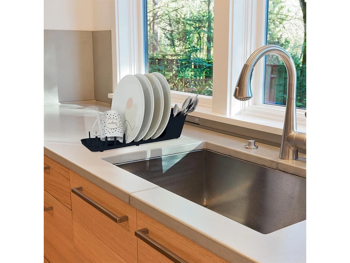 Egouttoir à vaisselle compact en plastique noir