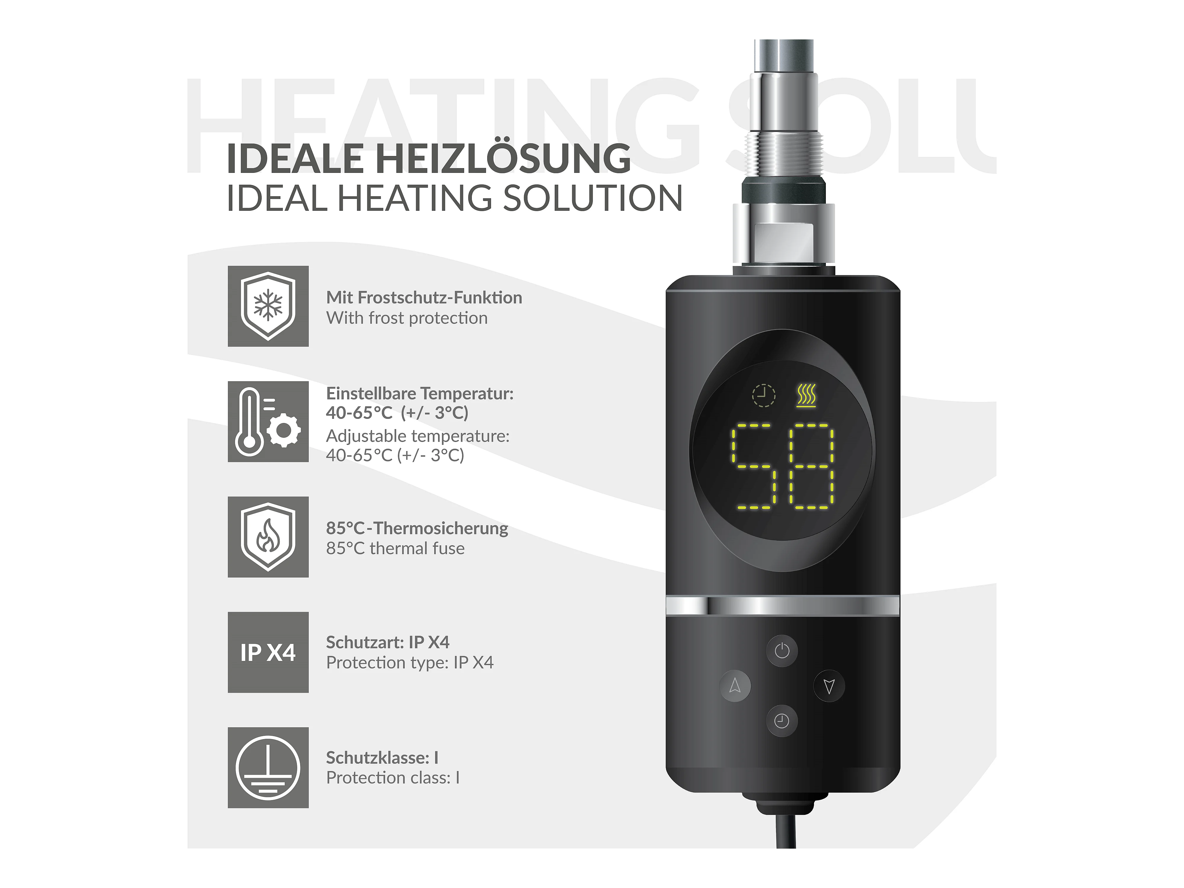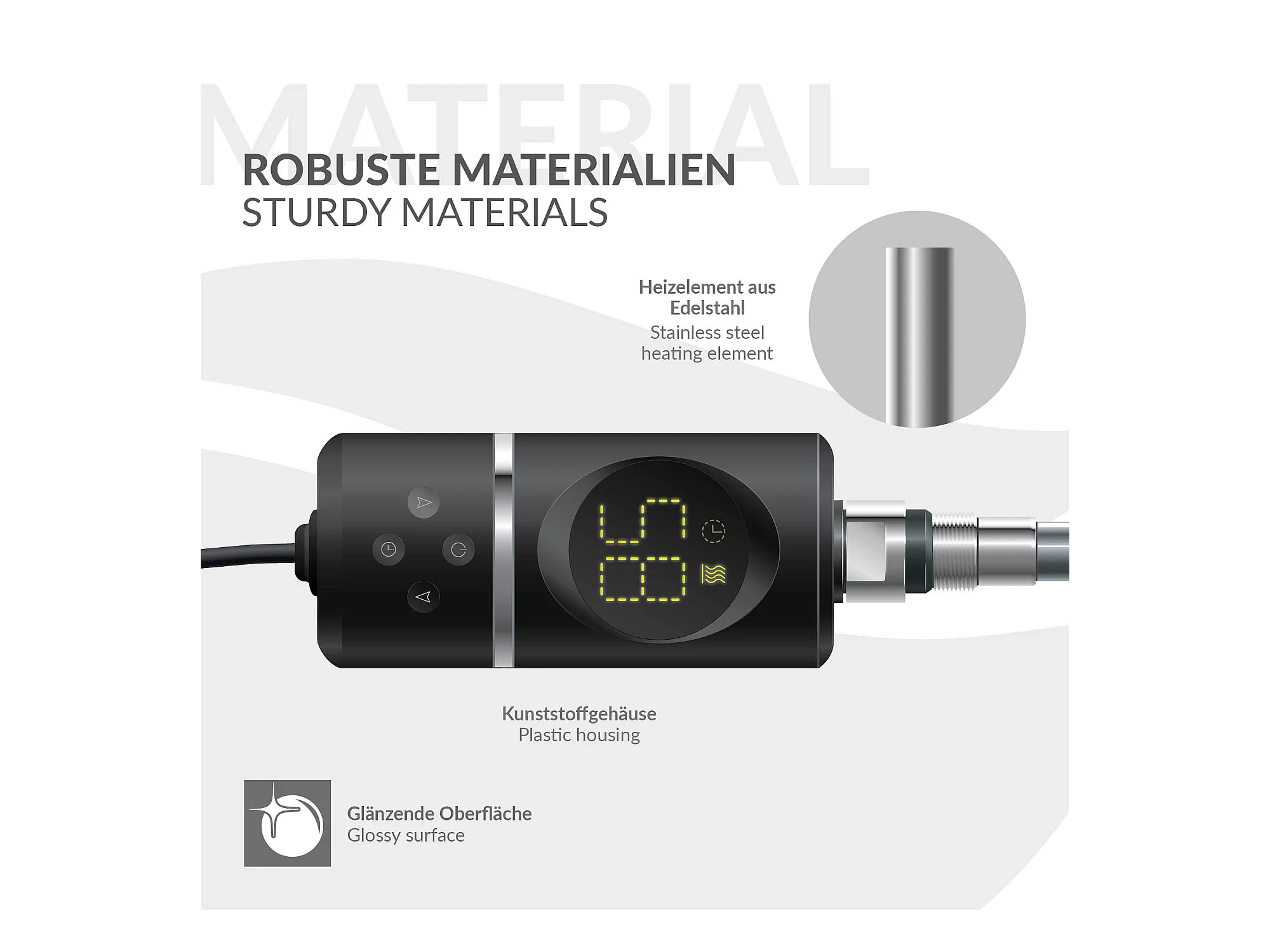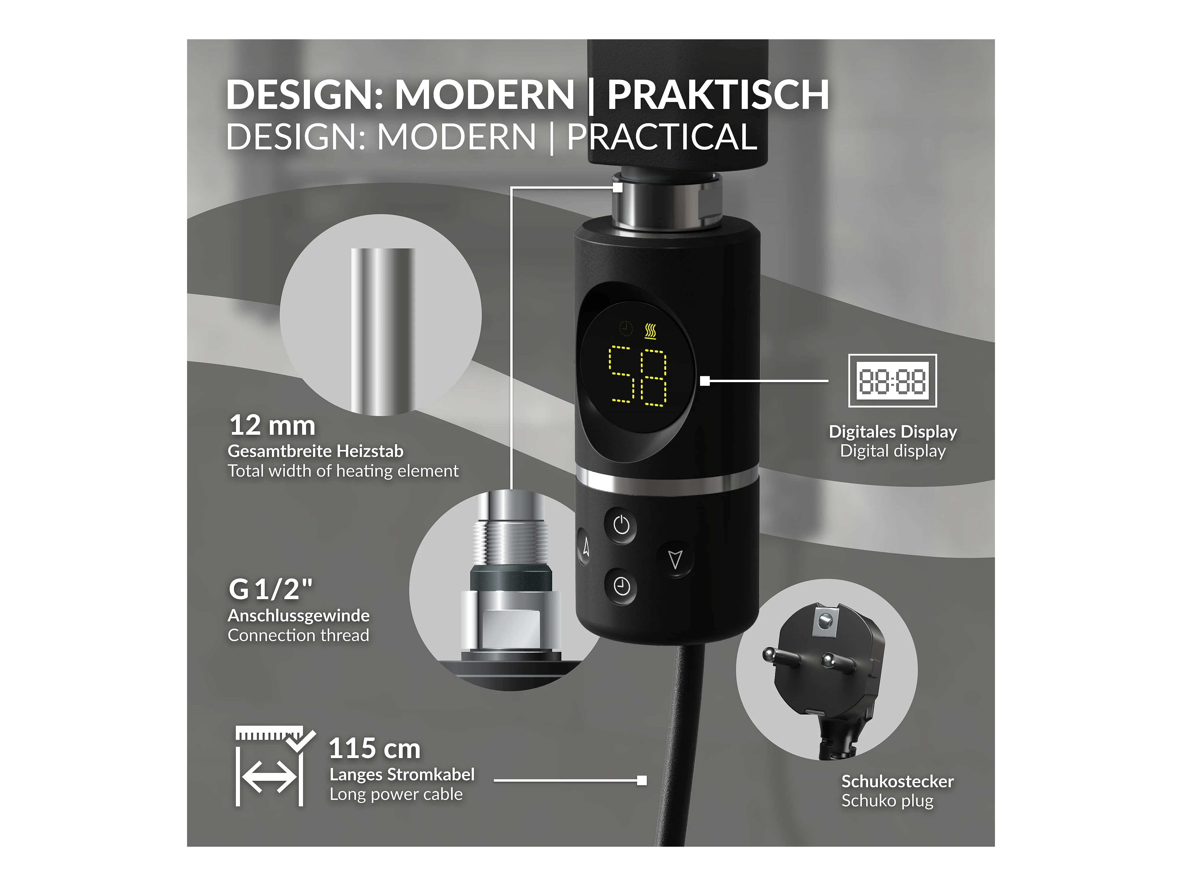 Élément chauffant noir 1200W avec thermostat/affichage digital résistance électrique seche serviette régulateur température thermoplongeur radiateur