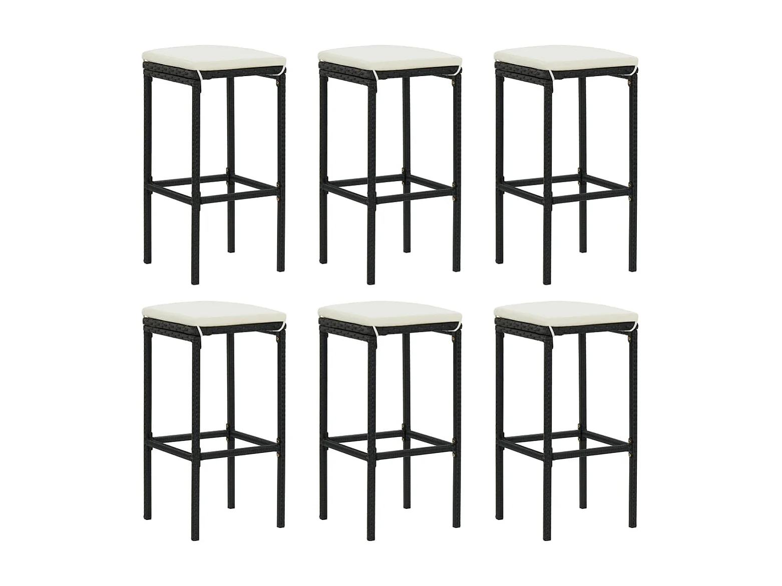 Elisah Ensemble de bar de jardin 7 pcs et coussins Résine tressée Noir