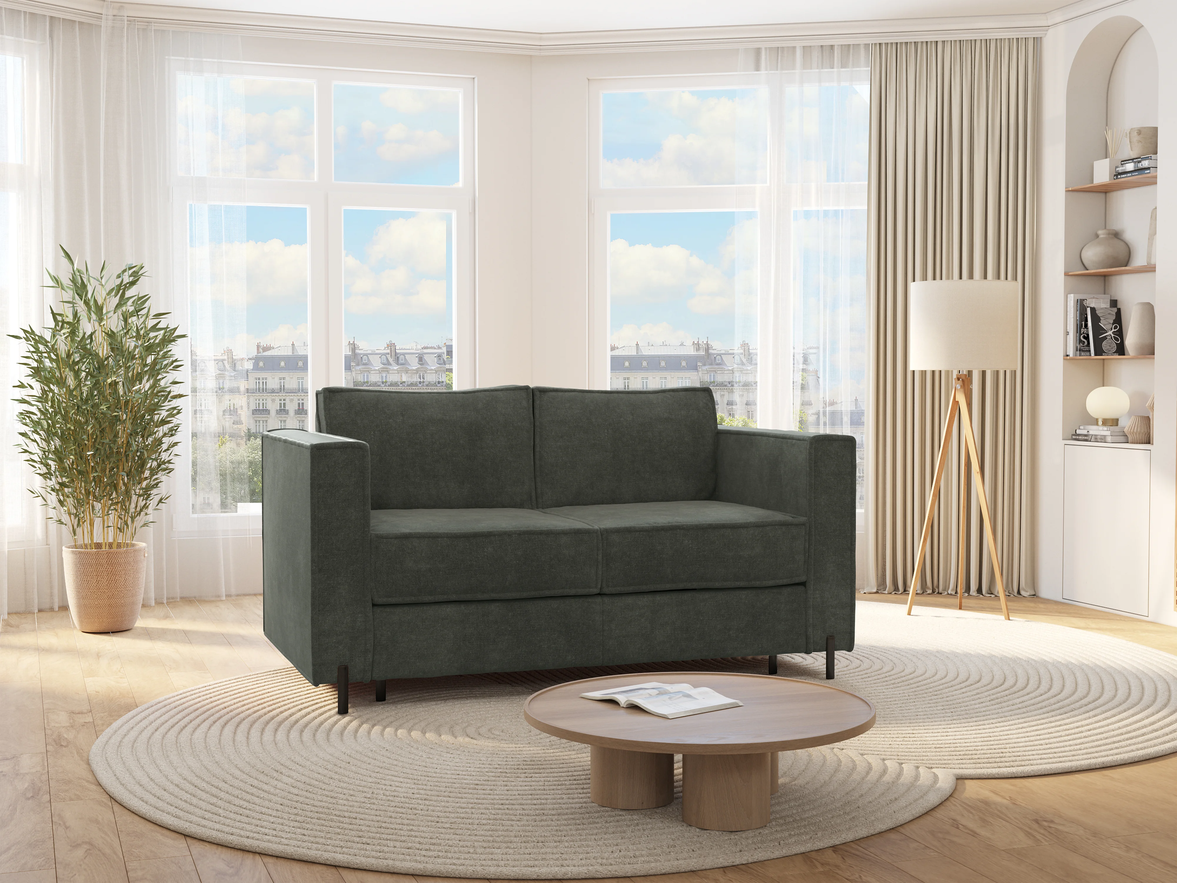 Canapé 3 places convertible express en tissu texturé vert - Couchage 140 cm - Matelas 20 cm - ELORYA