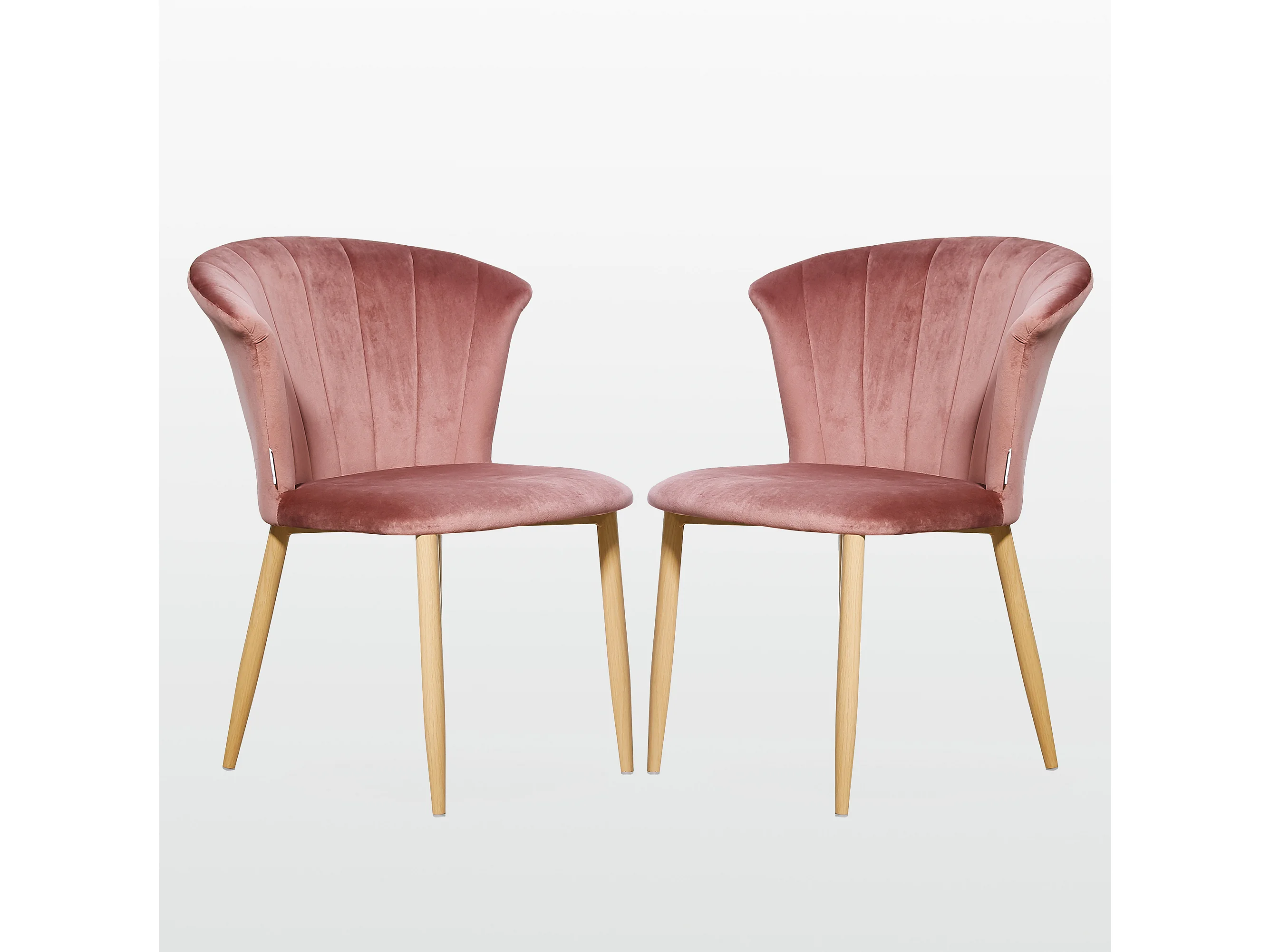 ELSA - Lot de 2 Chaises en Velours Vintage - Rose