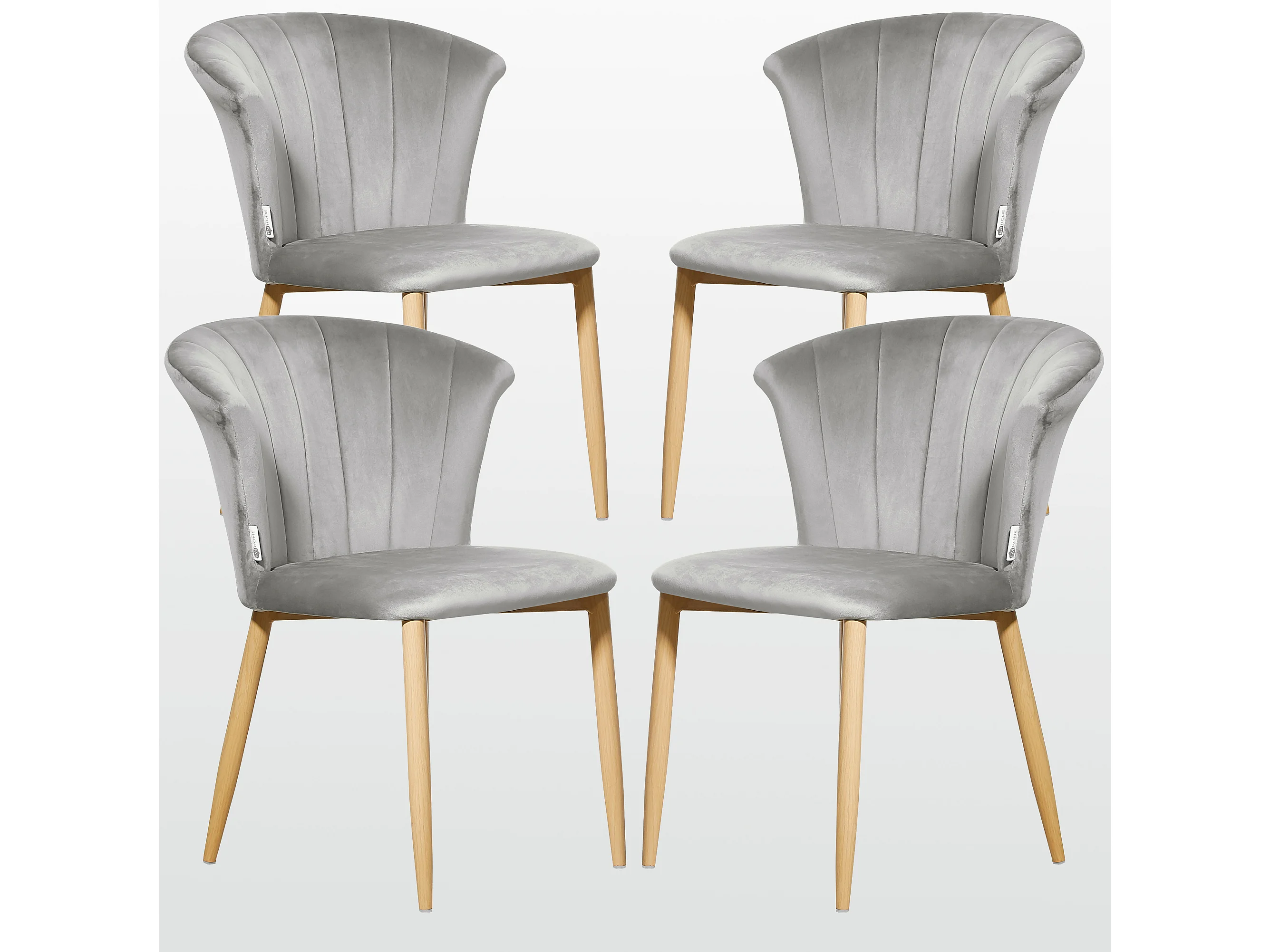 ELSA - Lot de 4 Chaises en Velours Vintage - Gris