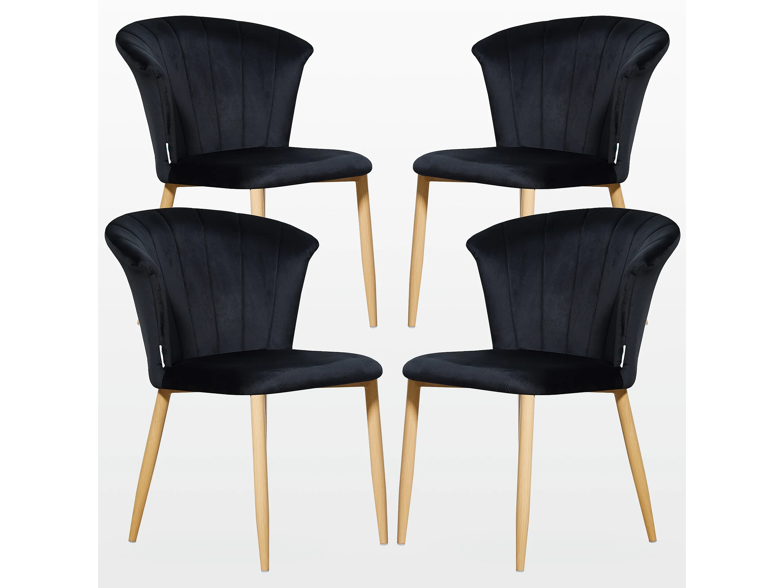 ELSA - Lot de 4 Chaises en Velours Vintage - Noir