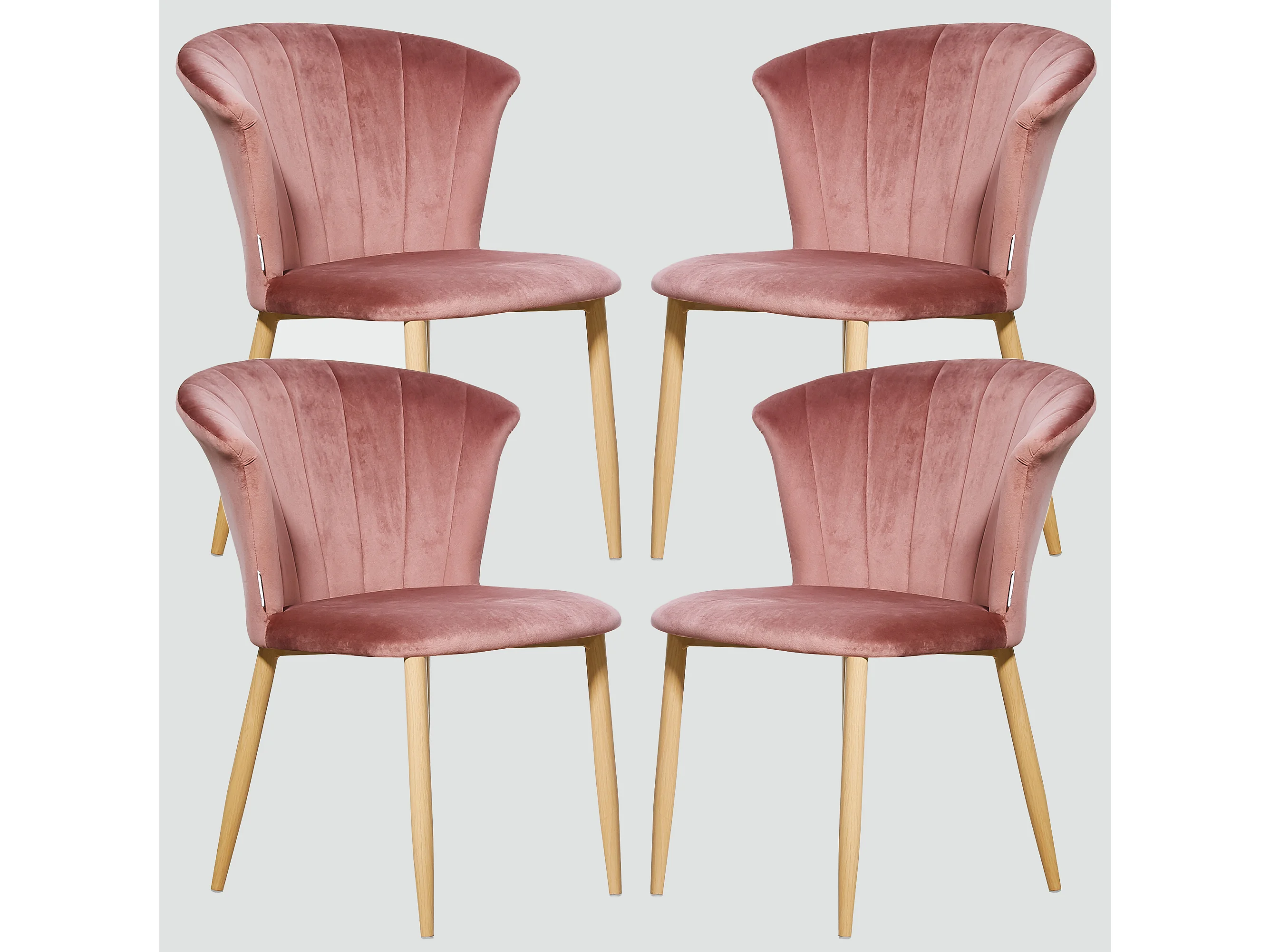 ELSA - Lot de 4 Chaises en Velours Vintage - Rose