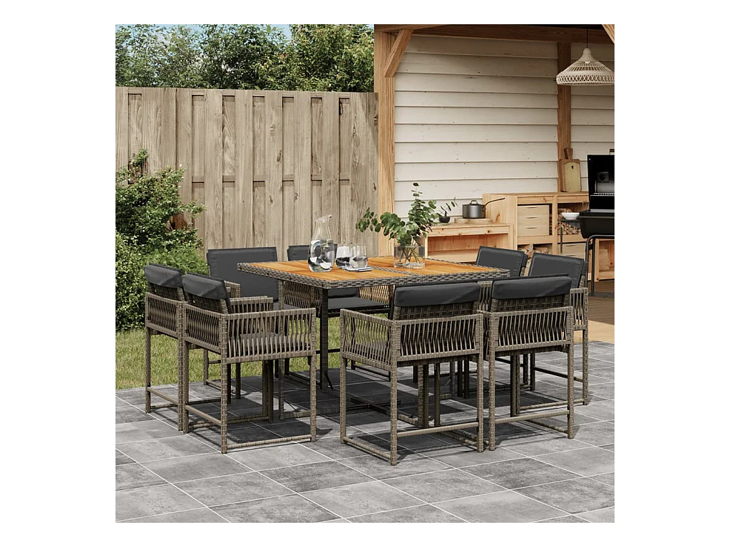 Emilia Ensemble à manger de jardin 9 pcs coussins gris résine tressée