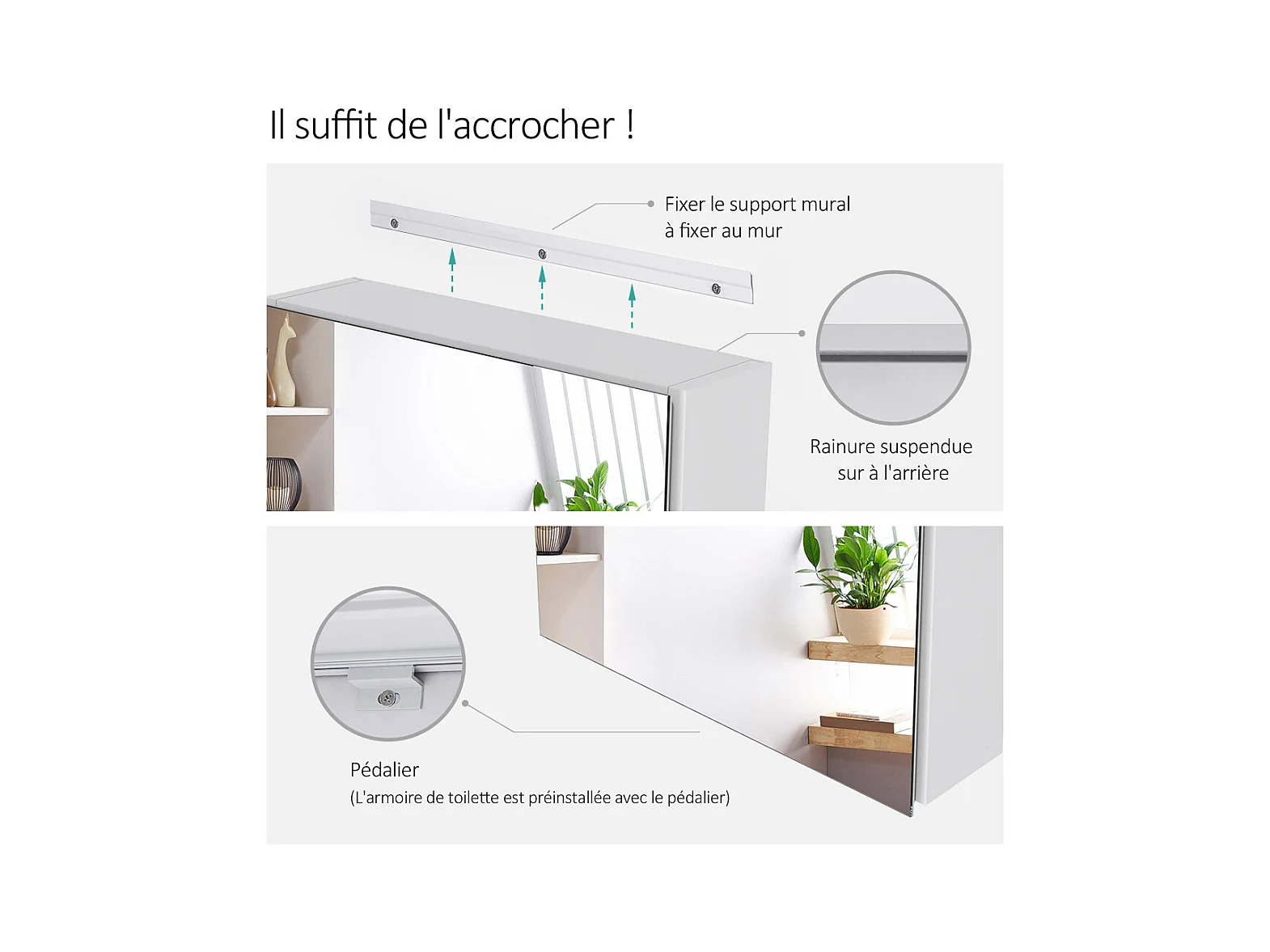 Armoire murale salle de bain avec miroir armoire à pharmacie51 x 16 x 66,5 cm
