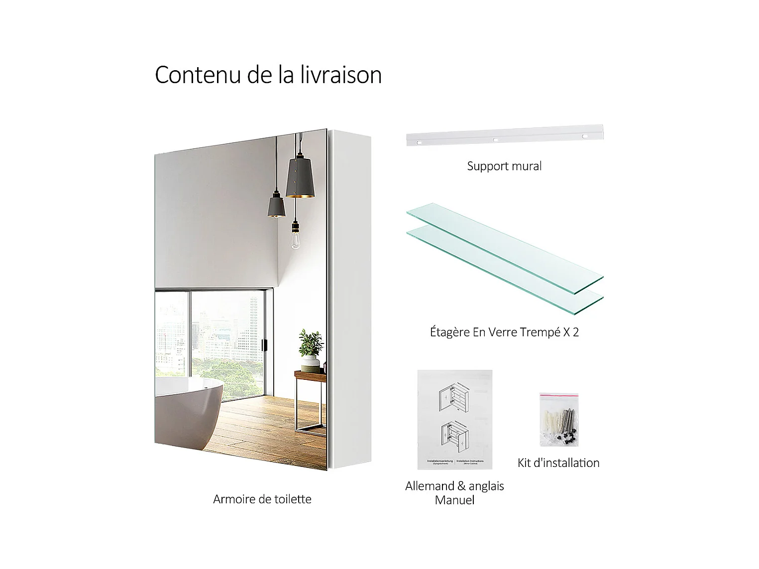 EMKE Armoires de toilette 50x65cm Blanche Armoire Salle de Bain en Miroir Double Face