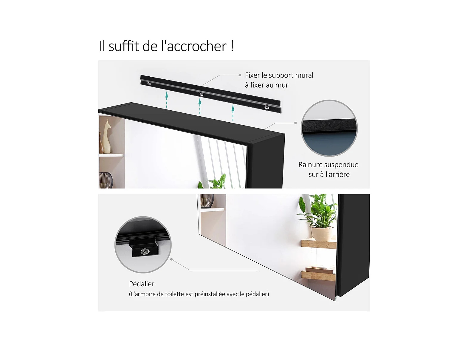 Armoire de salle de bain avec miroir murale - Noir - L80-H65-P17 - KLAUS
