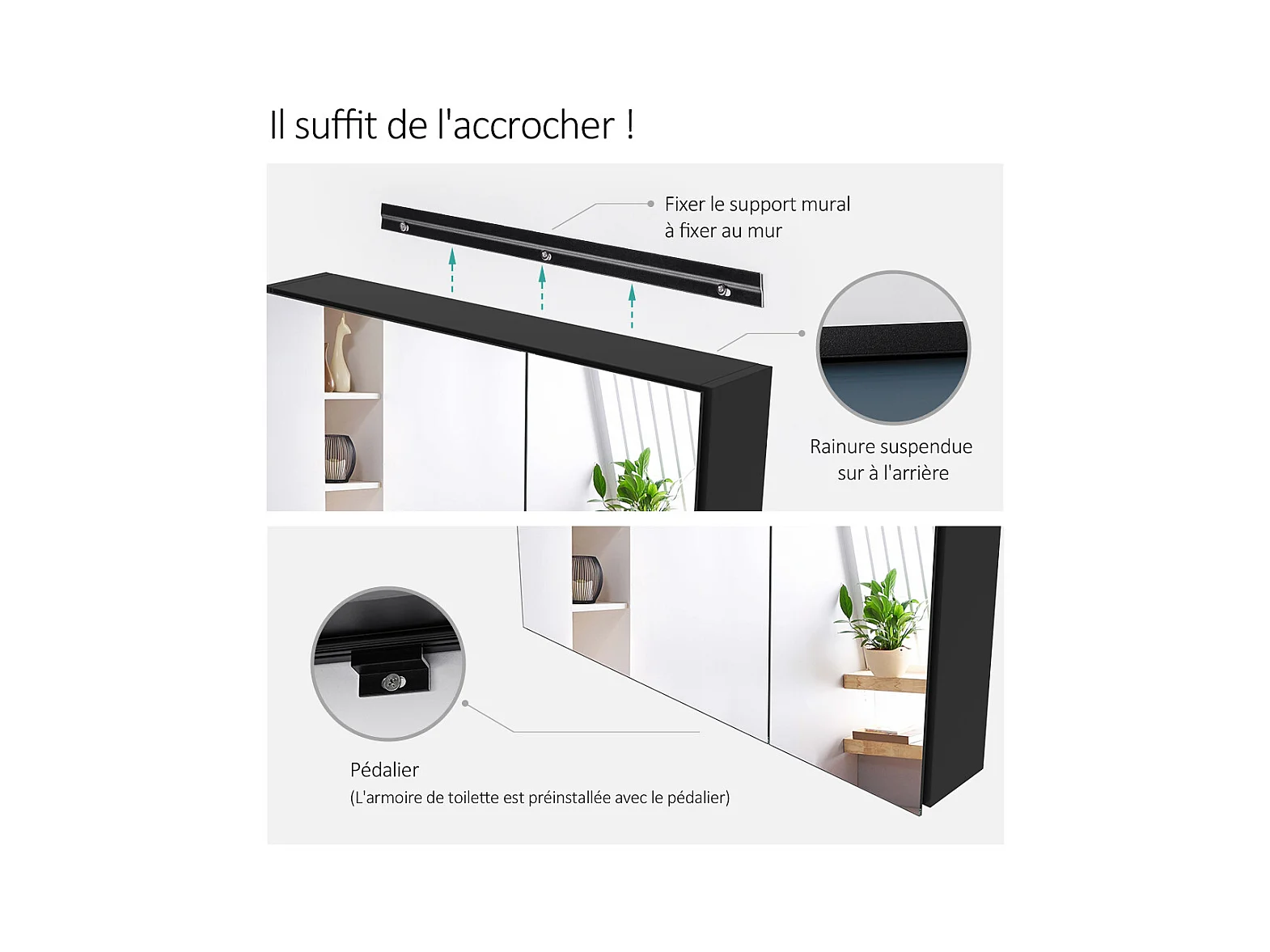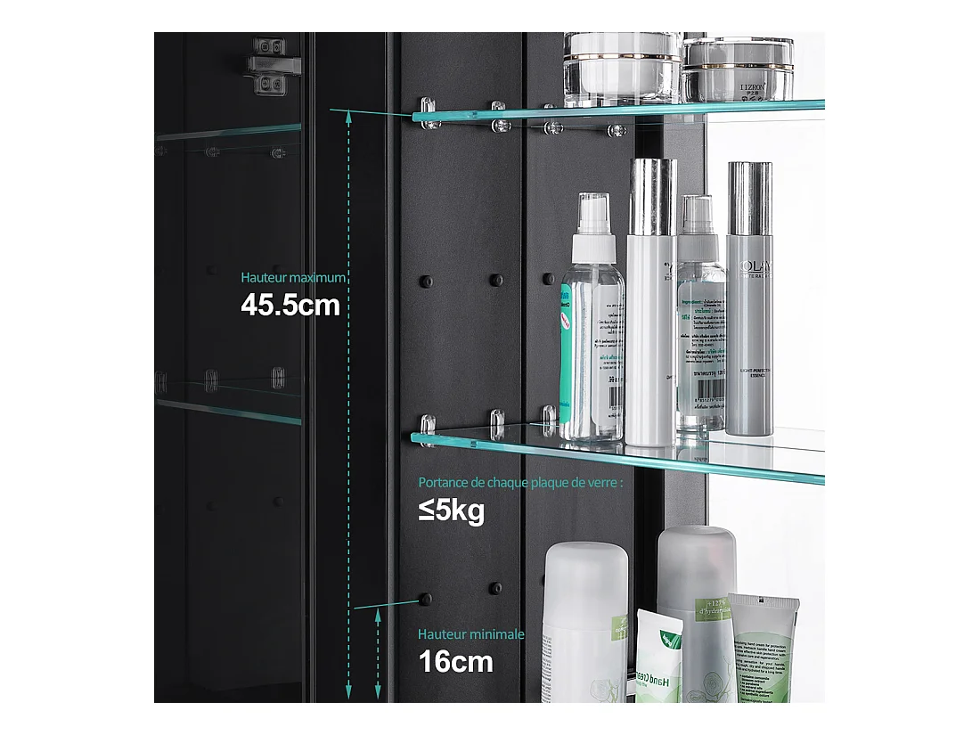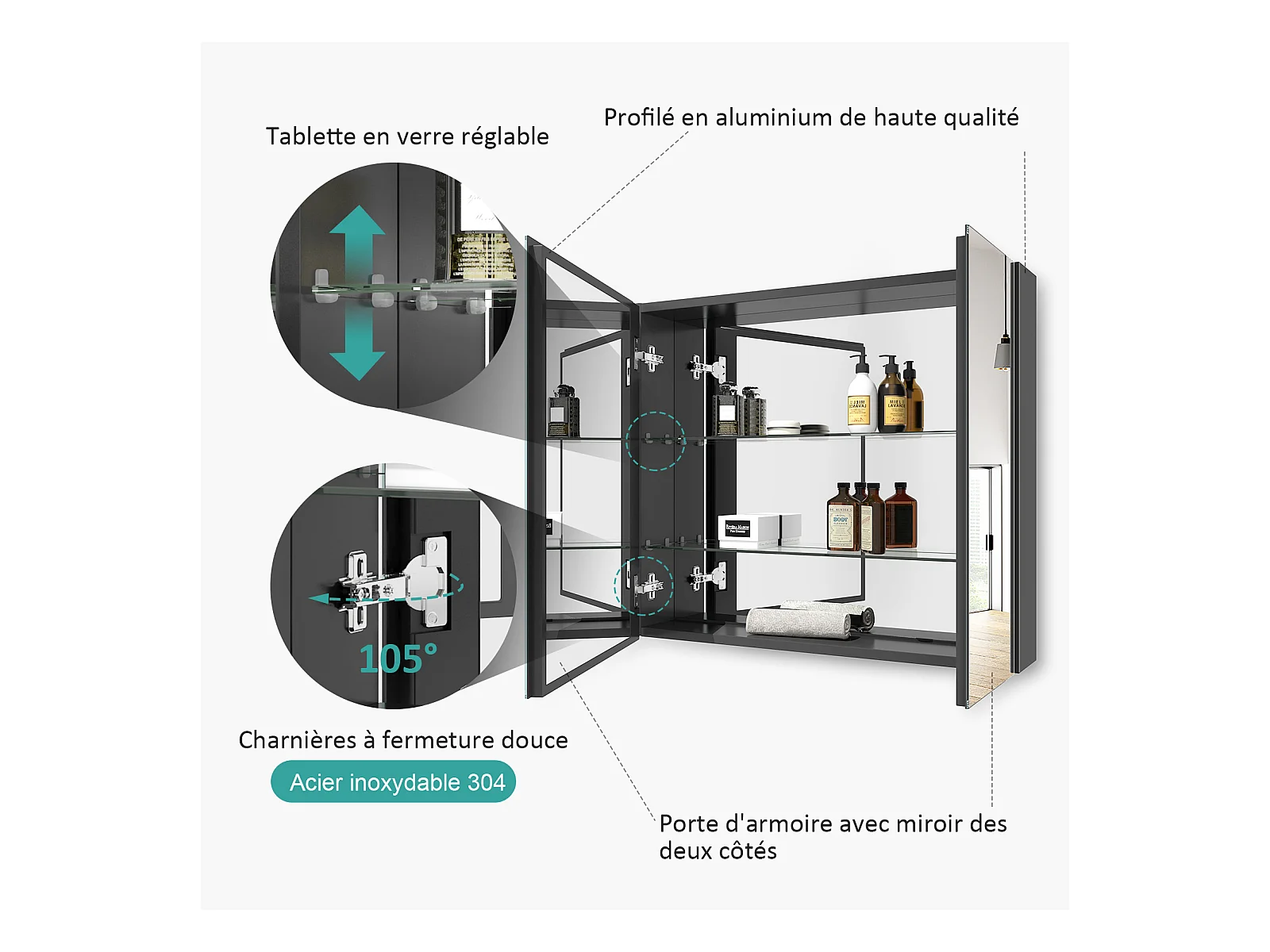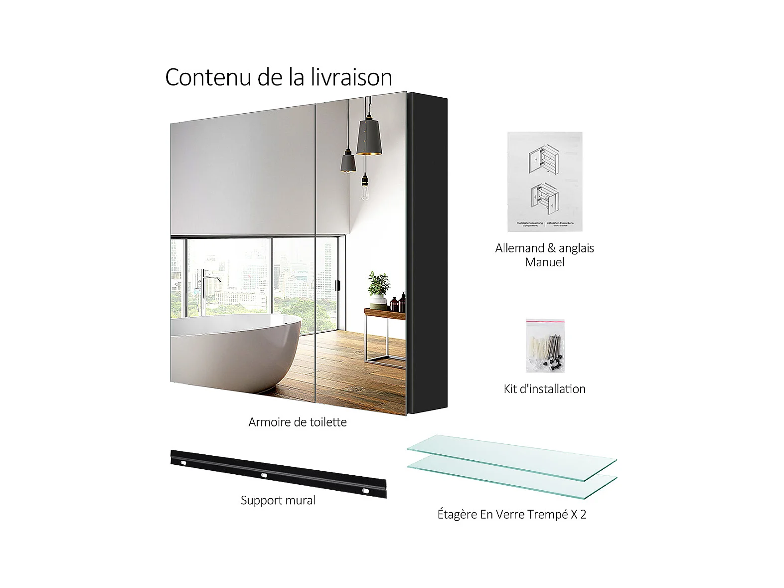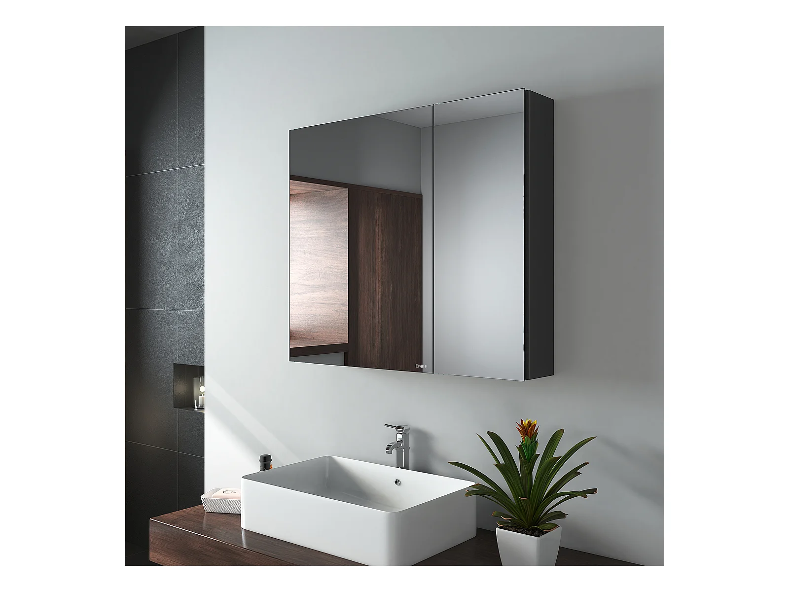 EMKE Armoires de toilette 75x65cm Noir Armoire Salle de Bain en Miroir Double Face