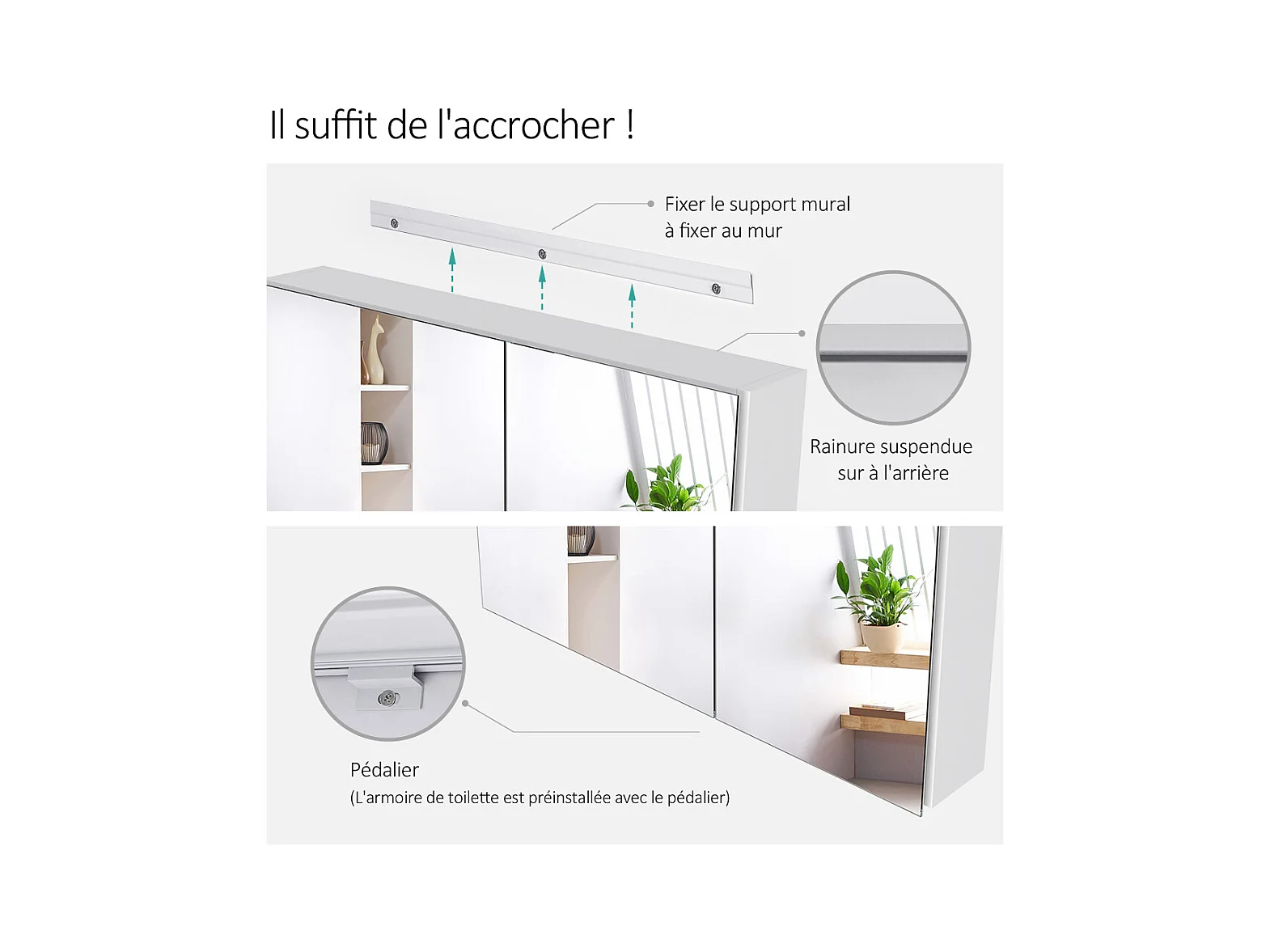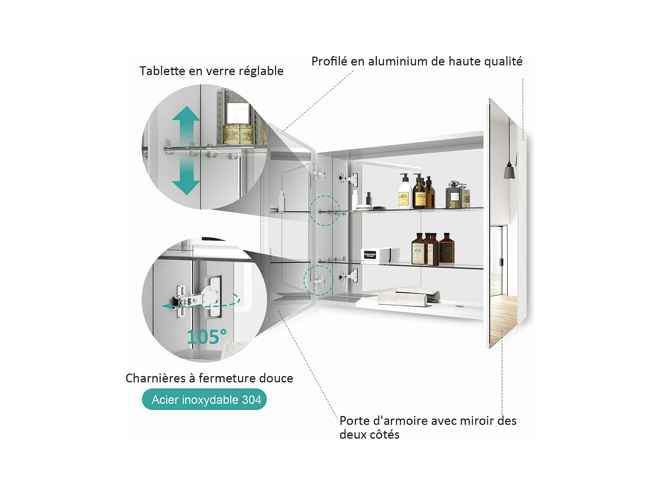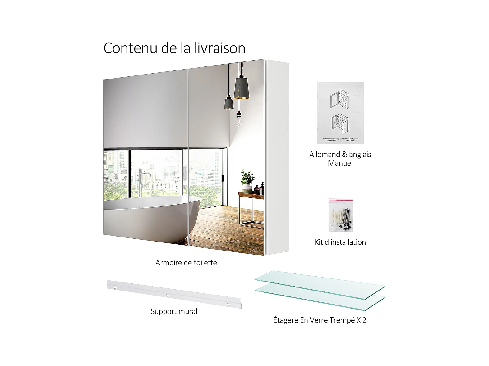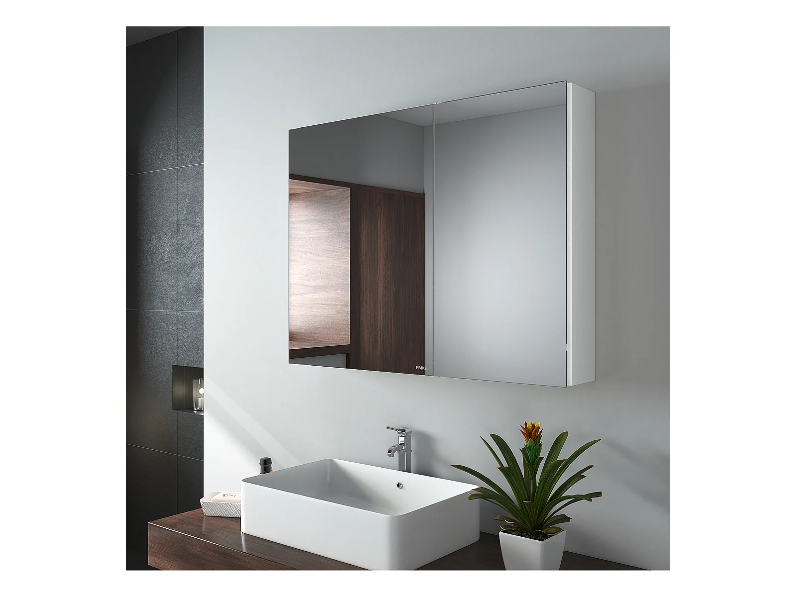 EMKE Armoires de toilette 85x65cm Blanche Armoire Salle de Bain en Miroir Double Face
