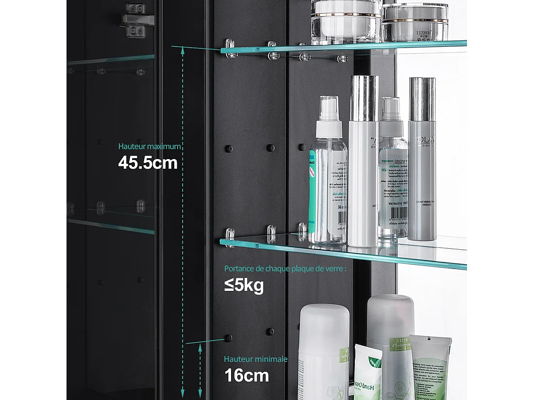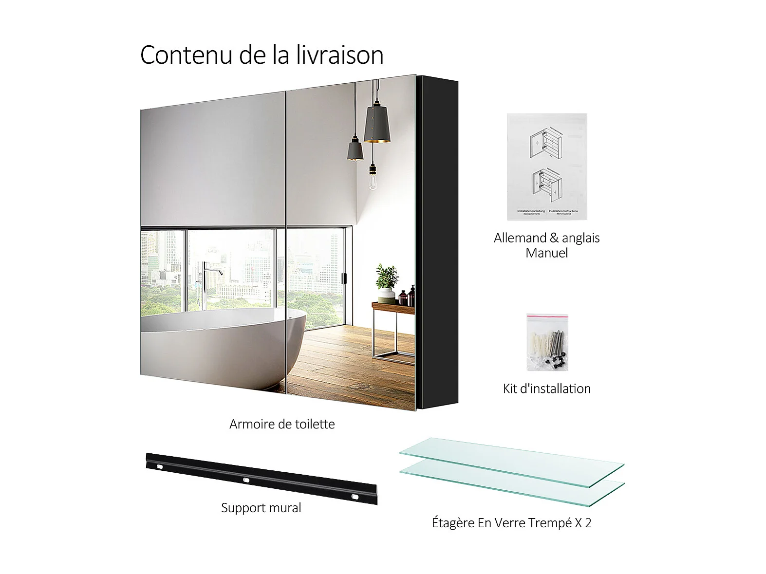 EMKE Armoires de toilette 85x65cm Noir Armoire Salle de Bain en Miroir Double Face