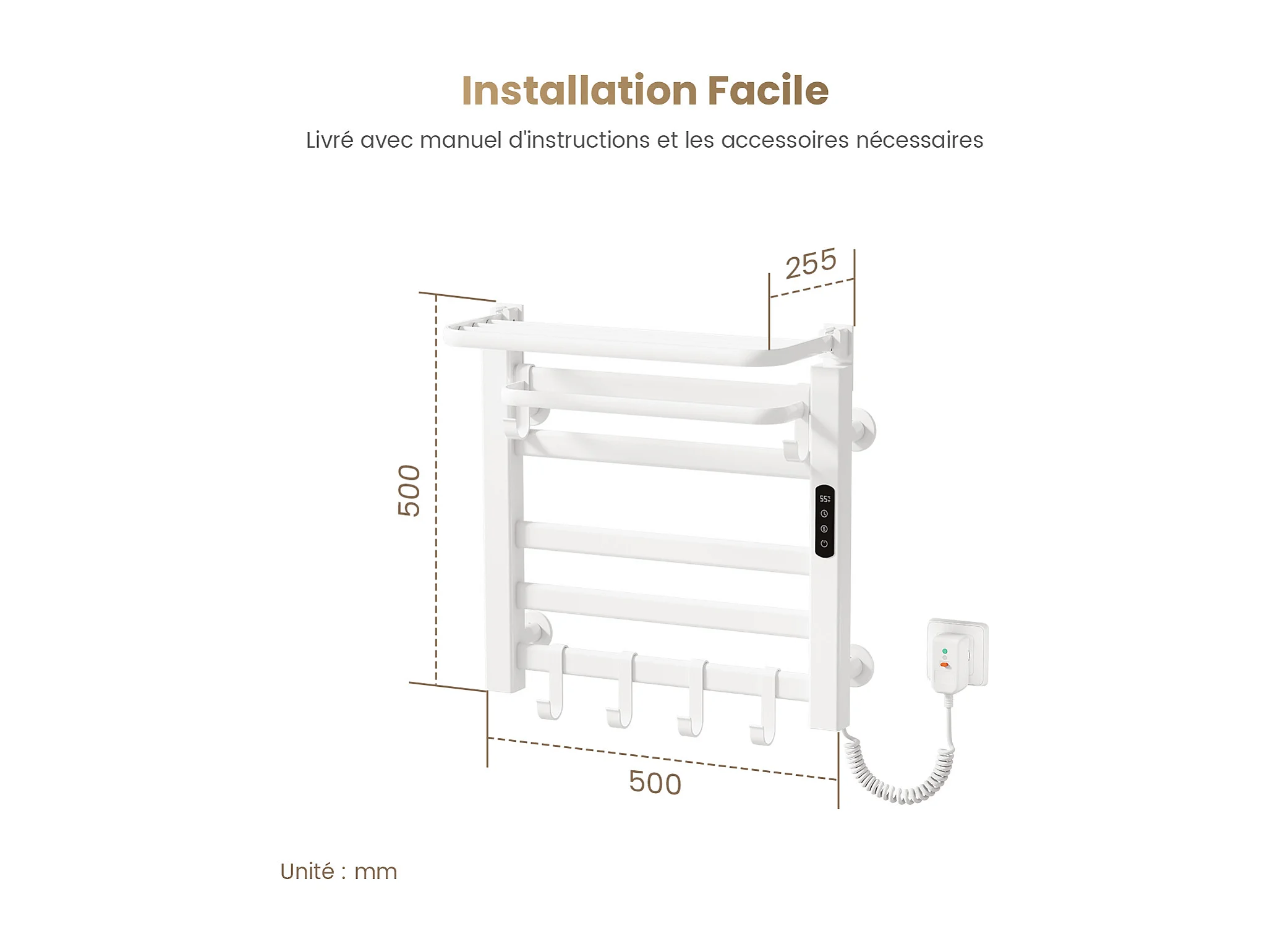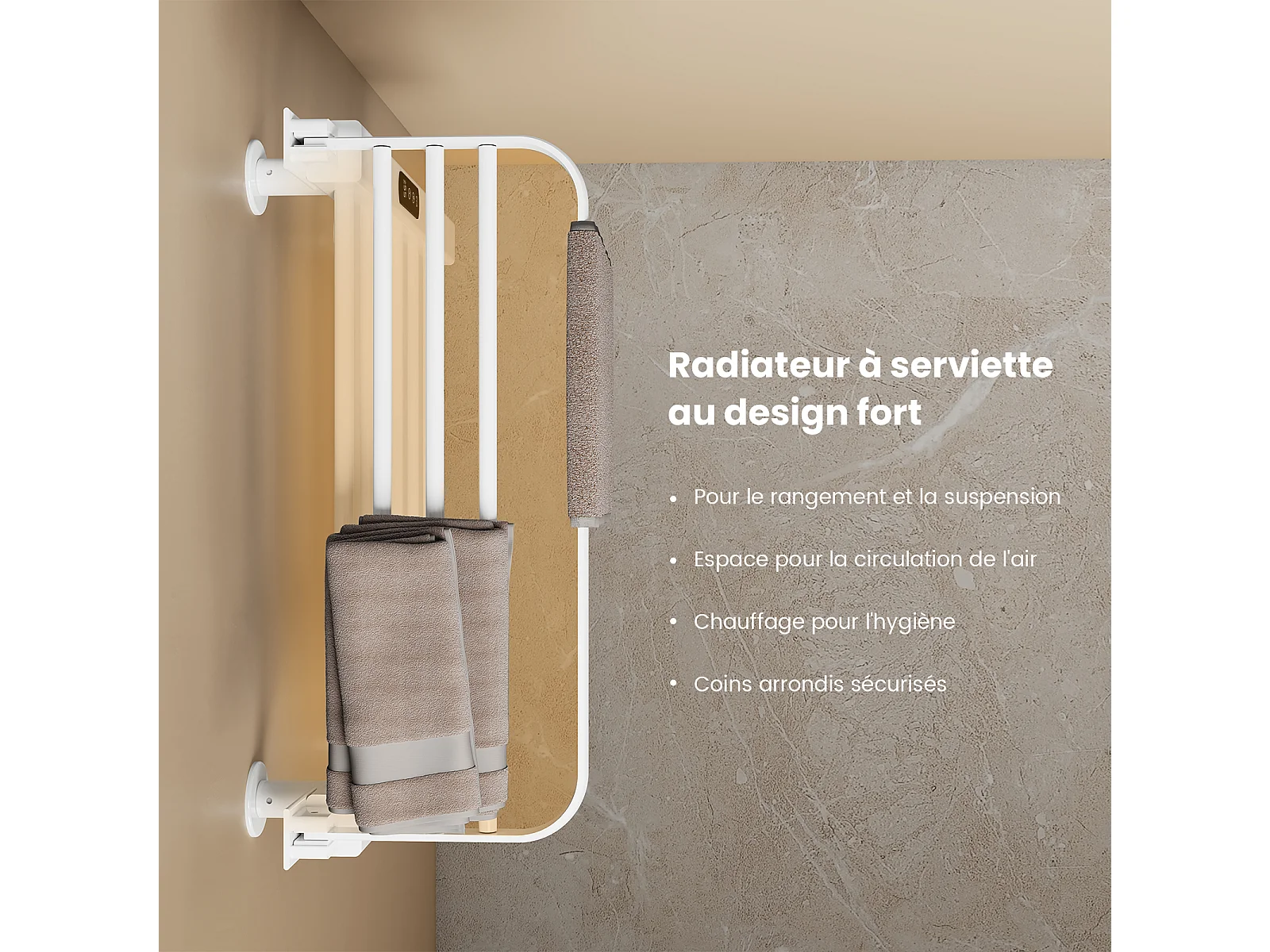 EMKE Chauffe-serviettes Électrique 50×50cm, Thermostat Intelligent WiFi, Radiateur de Salle de Bain Électrique, Chauffe-serviettes Électrique, Blanc