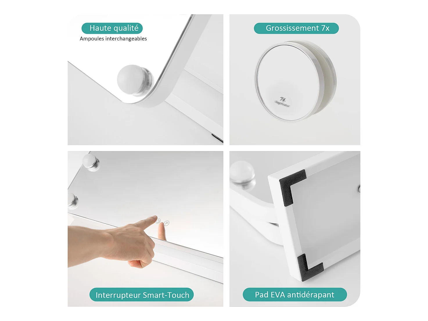 Miroir de maquillage hollywood coiffeuse avec lumière 30x41cm - Bande de LED