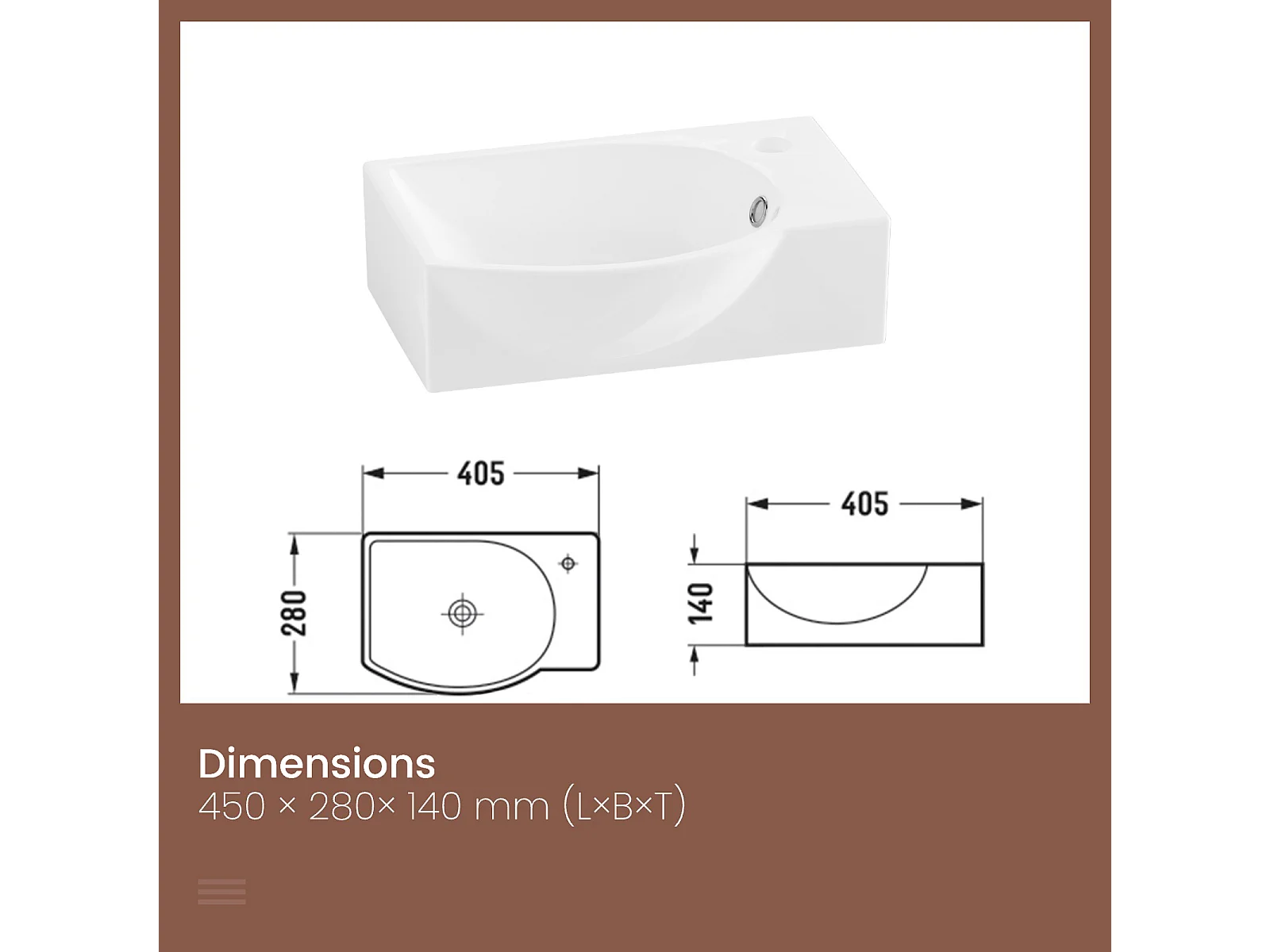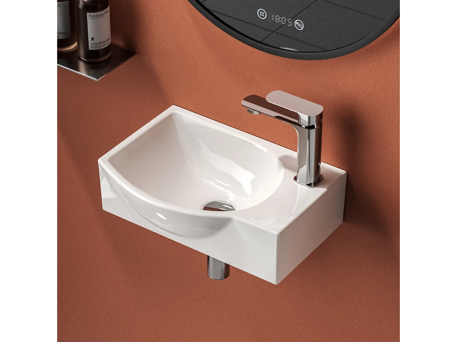 EMKE Lavabo Mural de Salle de Bain 405 x 280 x 140 mm, Vasque Rectangulaire en Céramique, Trou pour Robinet à Gauche, Blanc Brillant