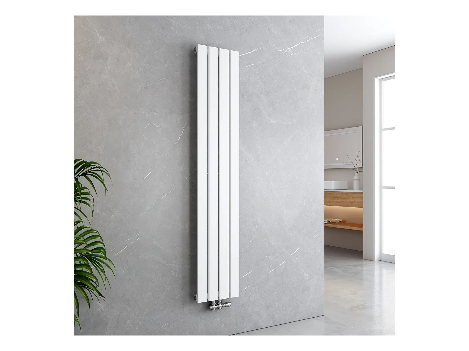 Radiateur Stella à panneaux blanc 260x1600 mm raccord central pour salle de bain