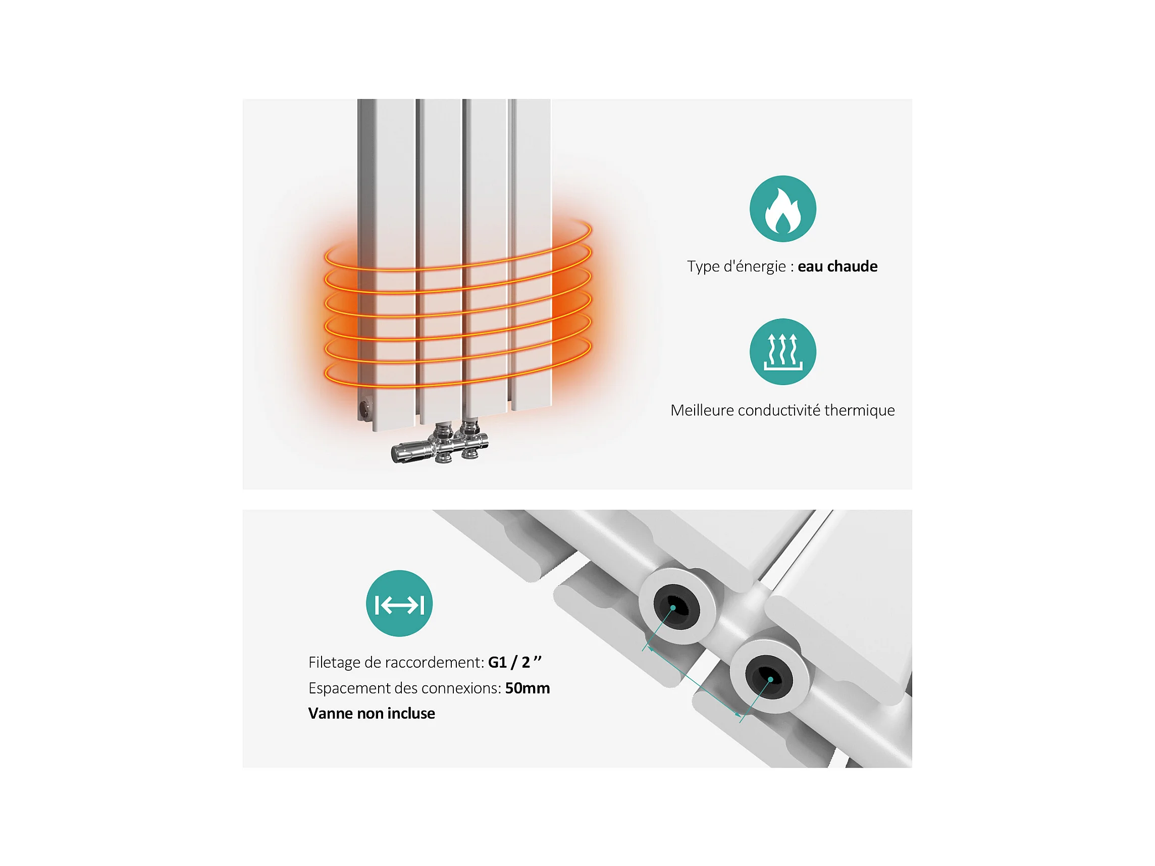 EMKE Radiateur à Eau Chaude, Radiateur plat seule couche connexion centrale, Montage mural vertical design, Blanc 160x53cm