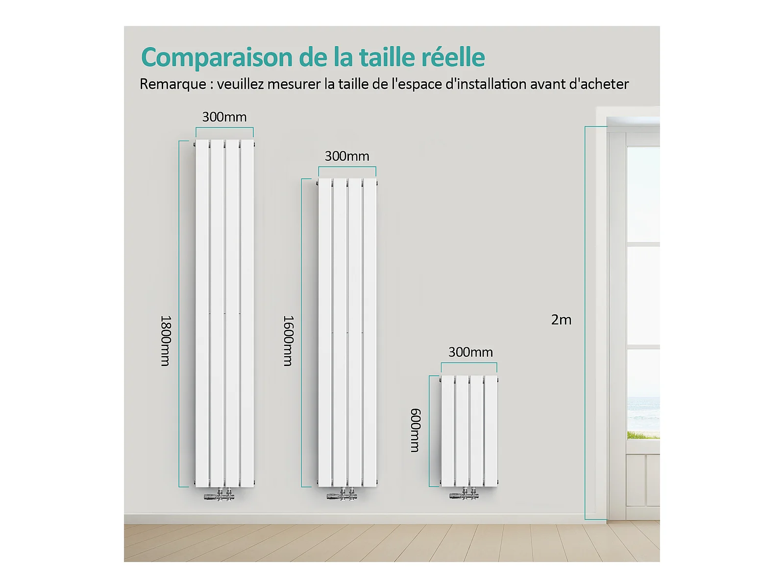 Radiateur chauffage bain remplacement radiateur de rénovation blanc 600x1600 mm