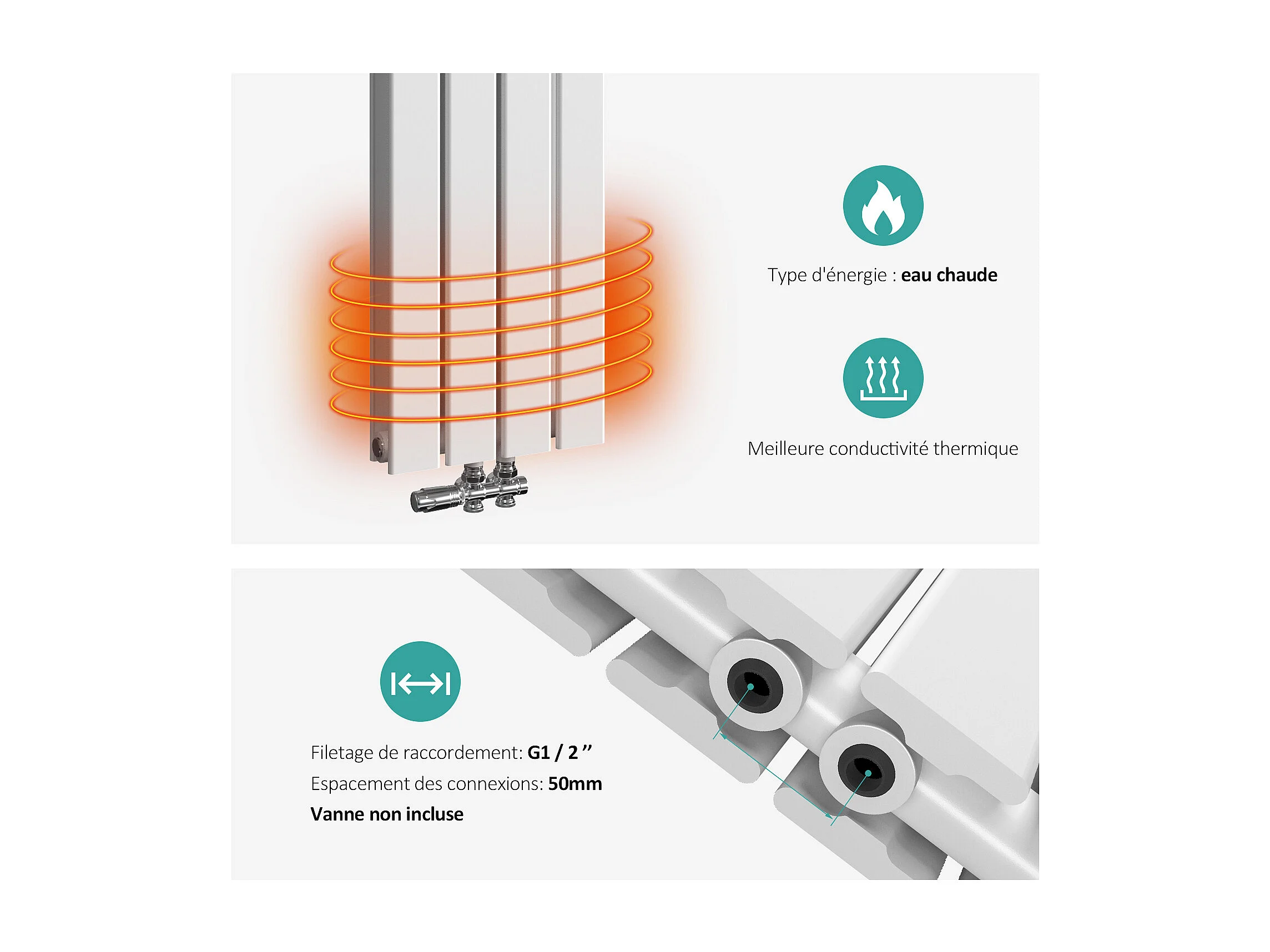 EMKE Radiateur eau chaude en acier Tube Rond Radiateur Mural Blanc 60x118cm 1828W Double Couche