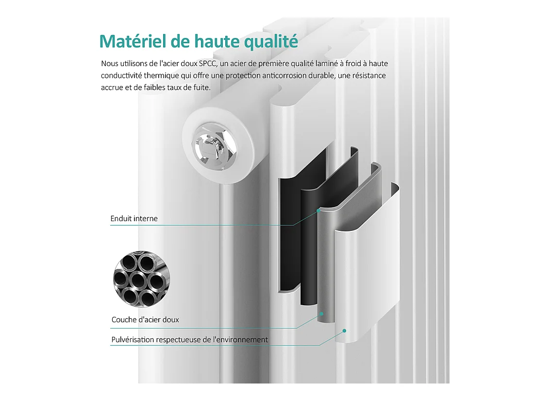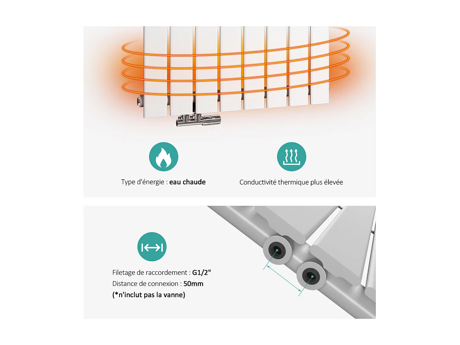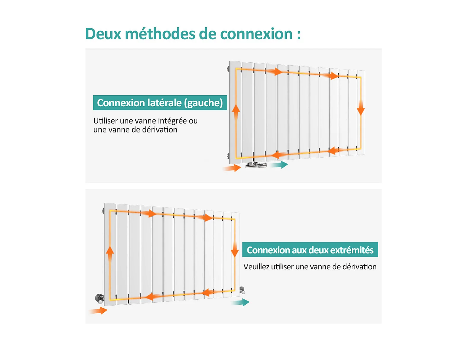 EMKE Radiateur à Eau Chaude, Radiateur plat seule couche connexion centrale, Montage mural vertical design, Blanc 180x53cm