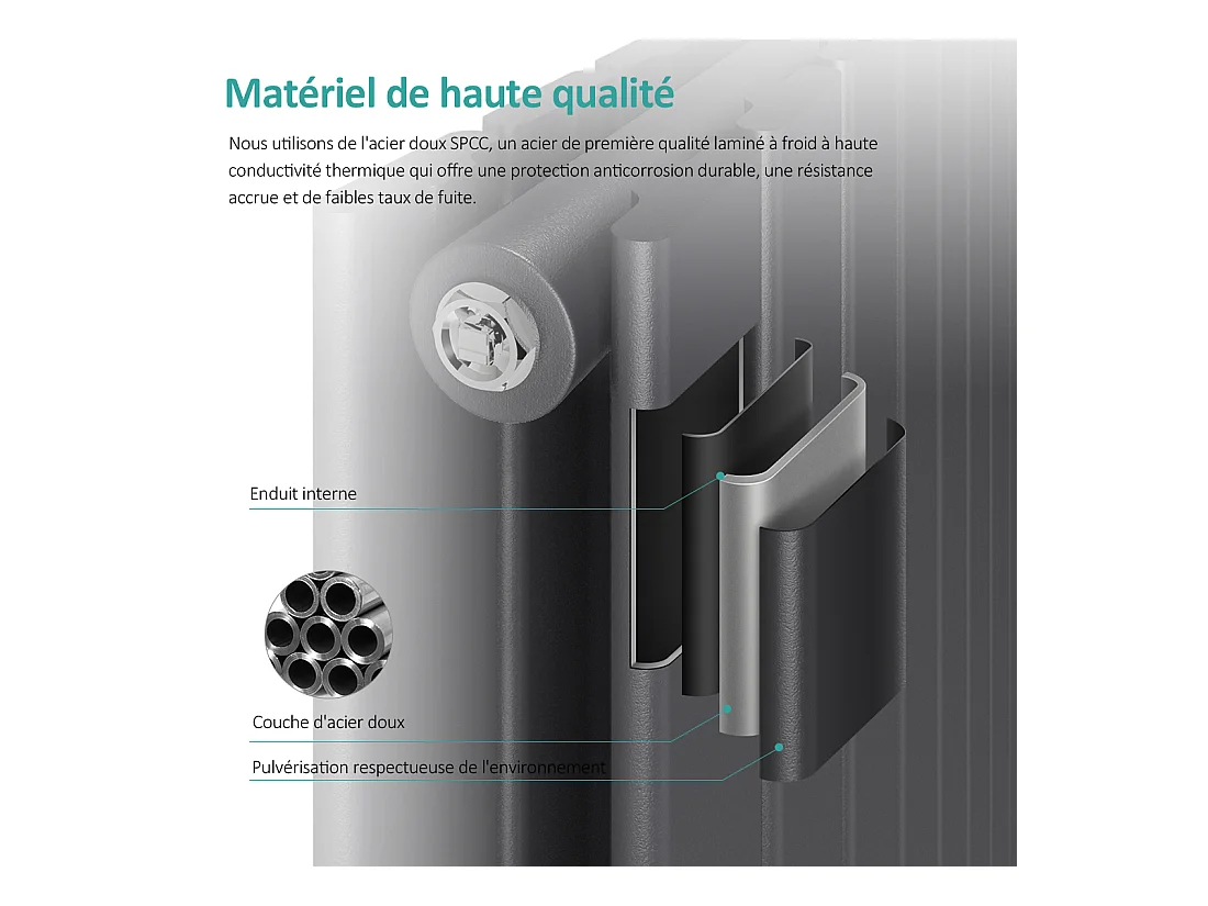 EMKE Radiateur eau chaude en acier Tube Plat Radiateur Mural Anthracite 63x62cm 826W Double Couche