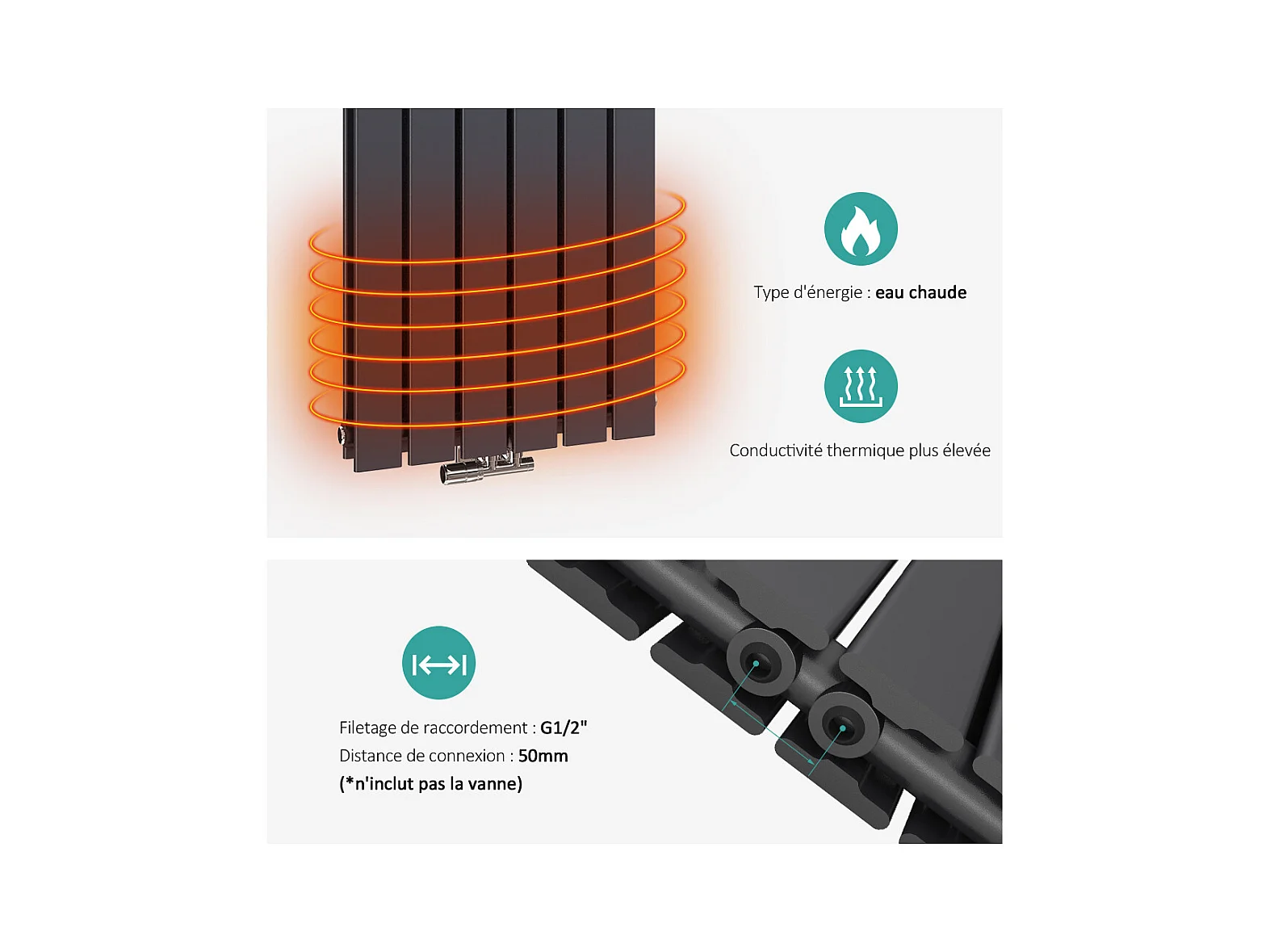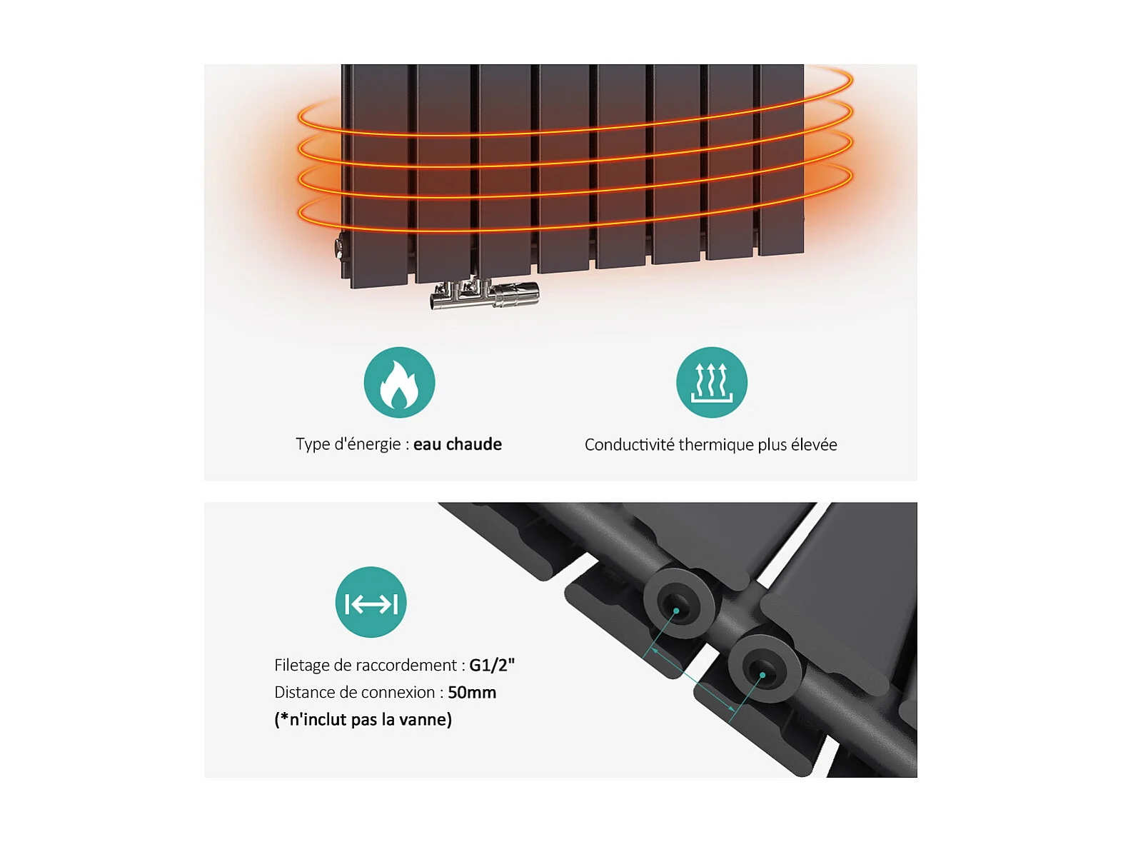 EMKE Radiateur à Eau Chaude, Radiateur plat seule couche connexion centrale, Montage mural vertical design, Anthracite 63x62cm