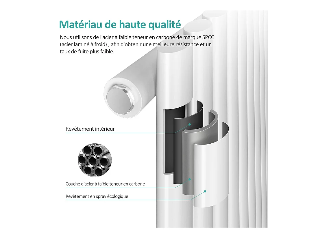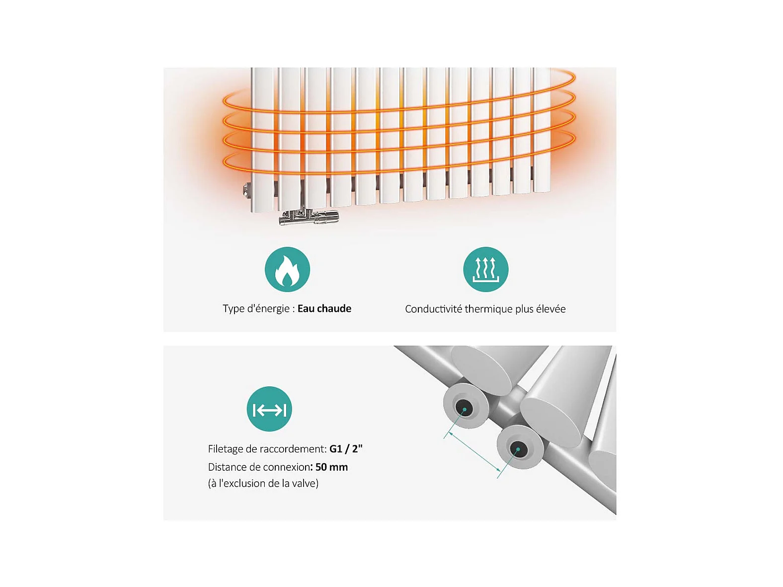 EMKE Radiateur eau chaude en acier Tube Rond Radiateur Mural Blanc 180x60cm 2175W Double Couche