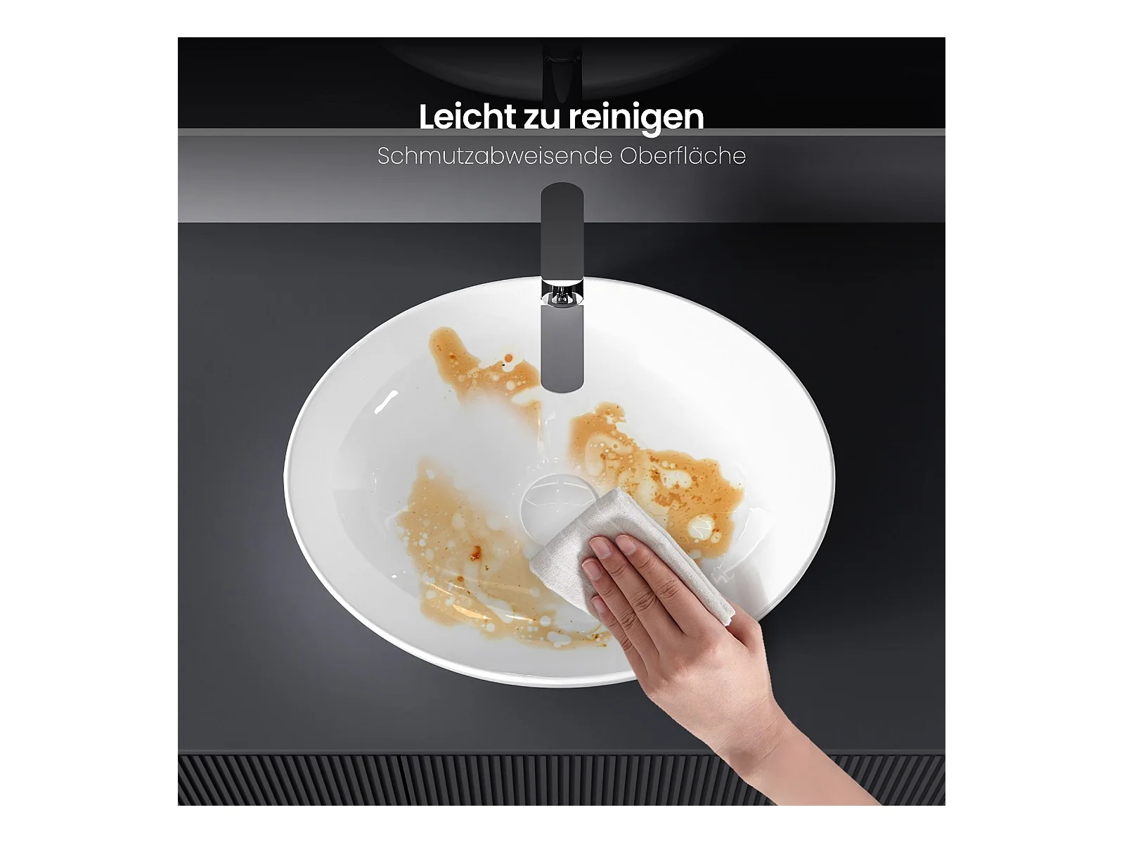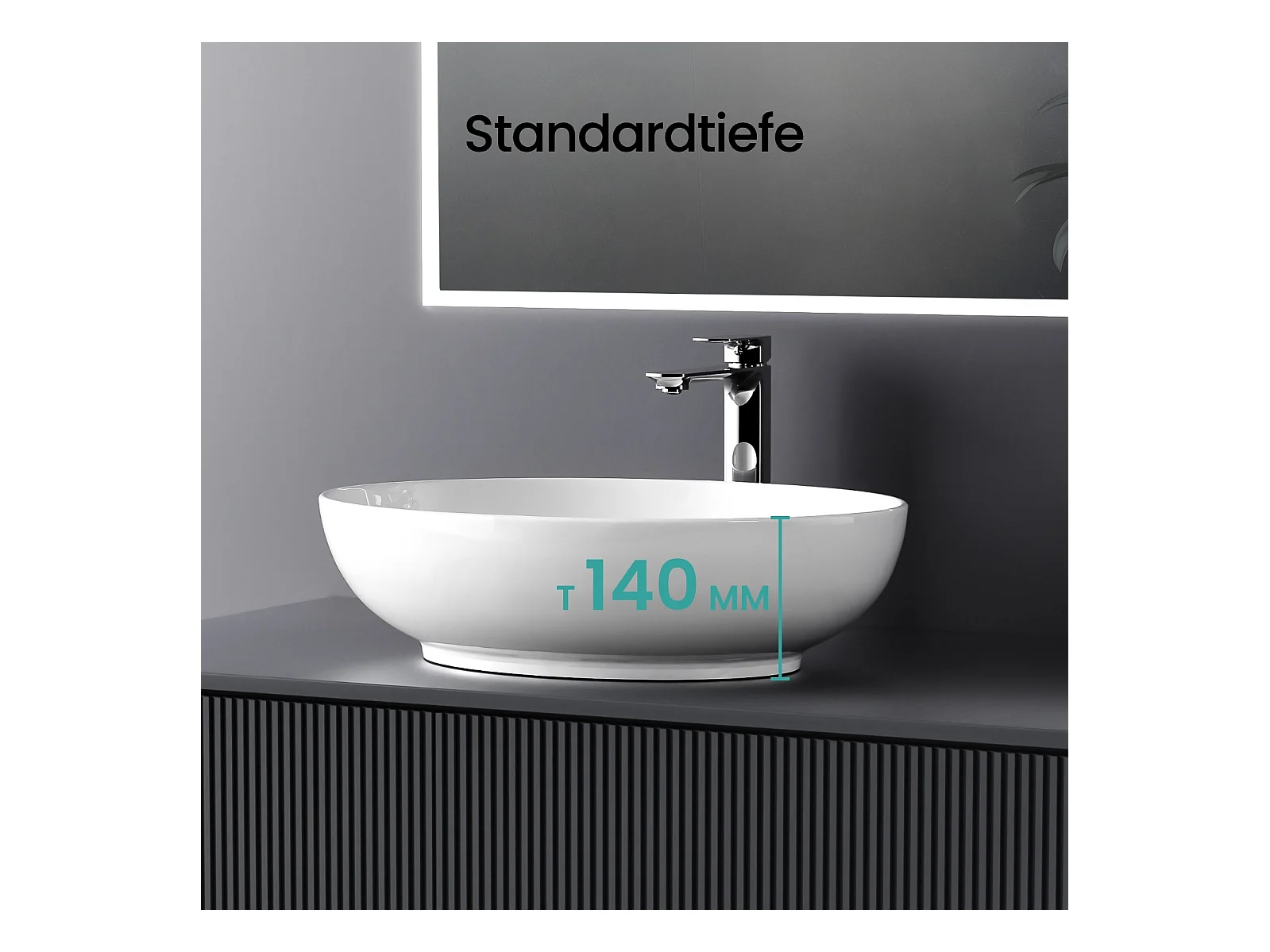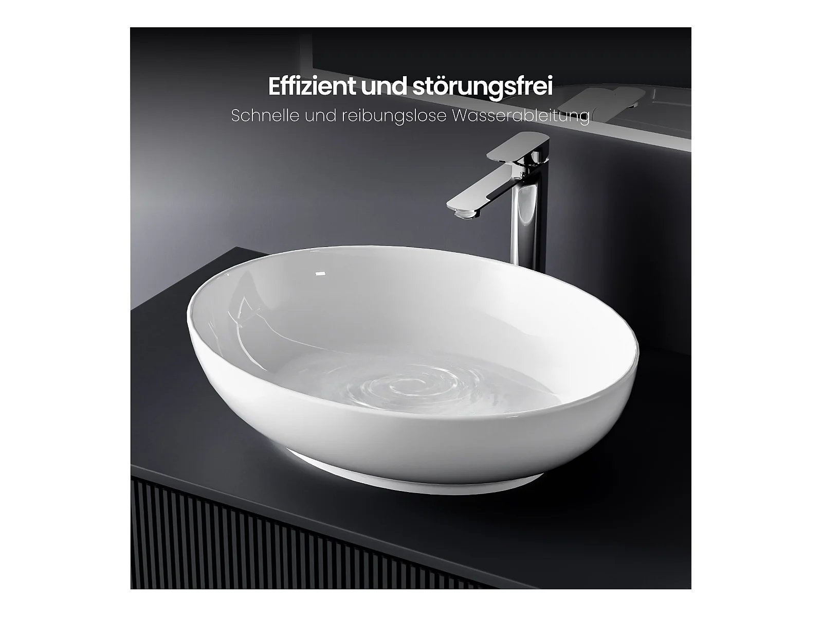 EMKE Vasque à Poser en céramique 41,5×33,5×13cm, Lavabo salle de bain Ovale, Lavabo à poser blanc brillant