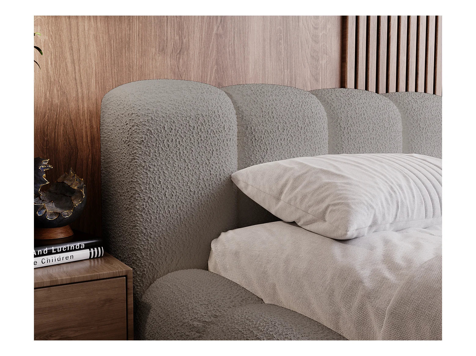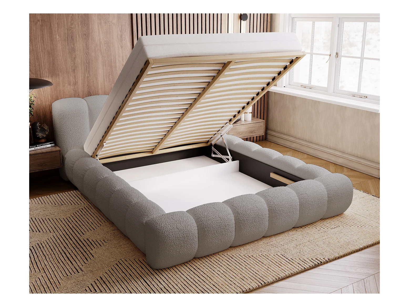 Emporius Cloud Lit rembourré 180x200 - Lit coffre avec rangement et sommier à lattes - Lit double 180x200 cm, tissu bouclé Gris clair (Anthology 15)