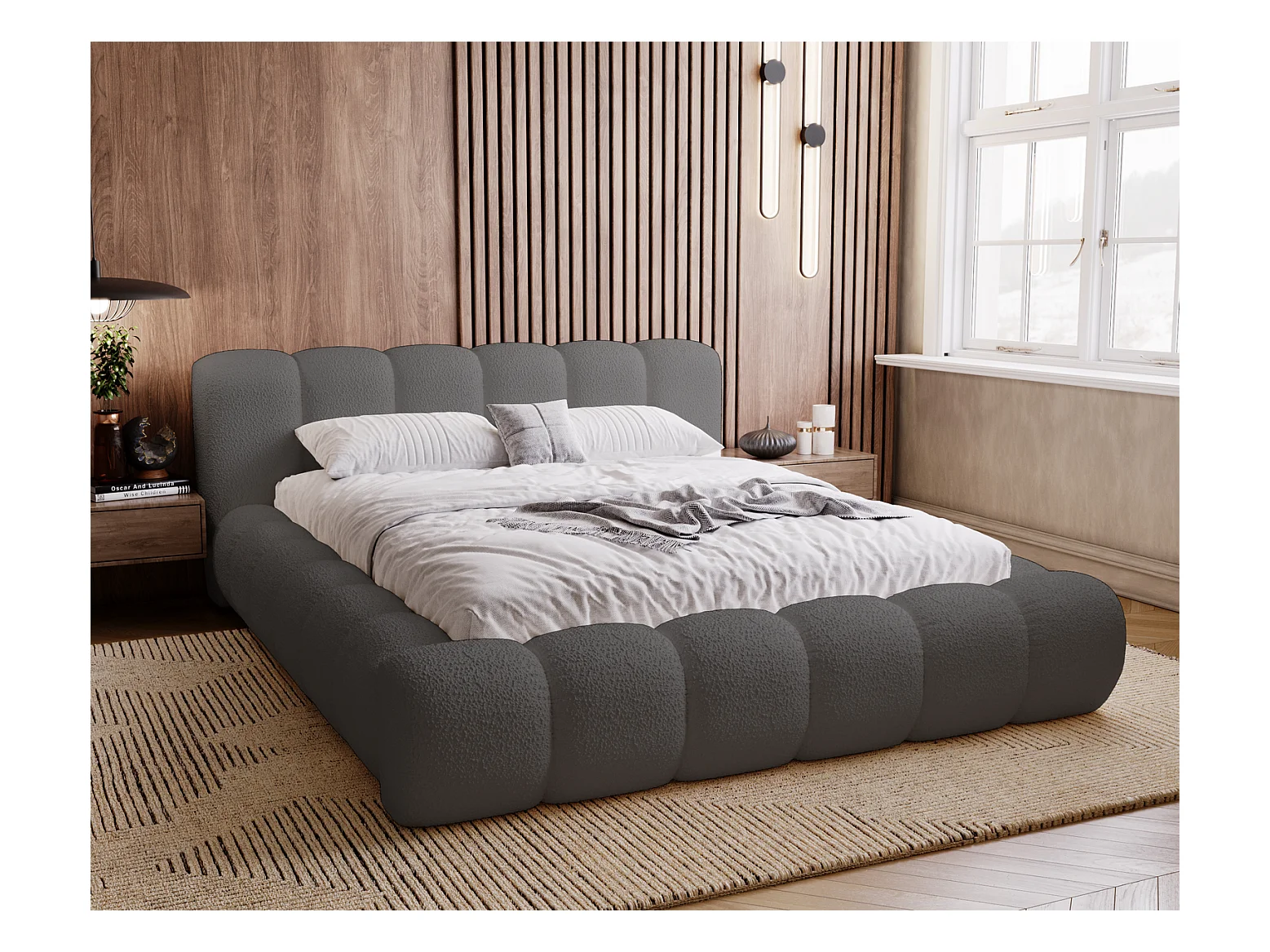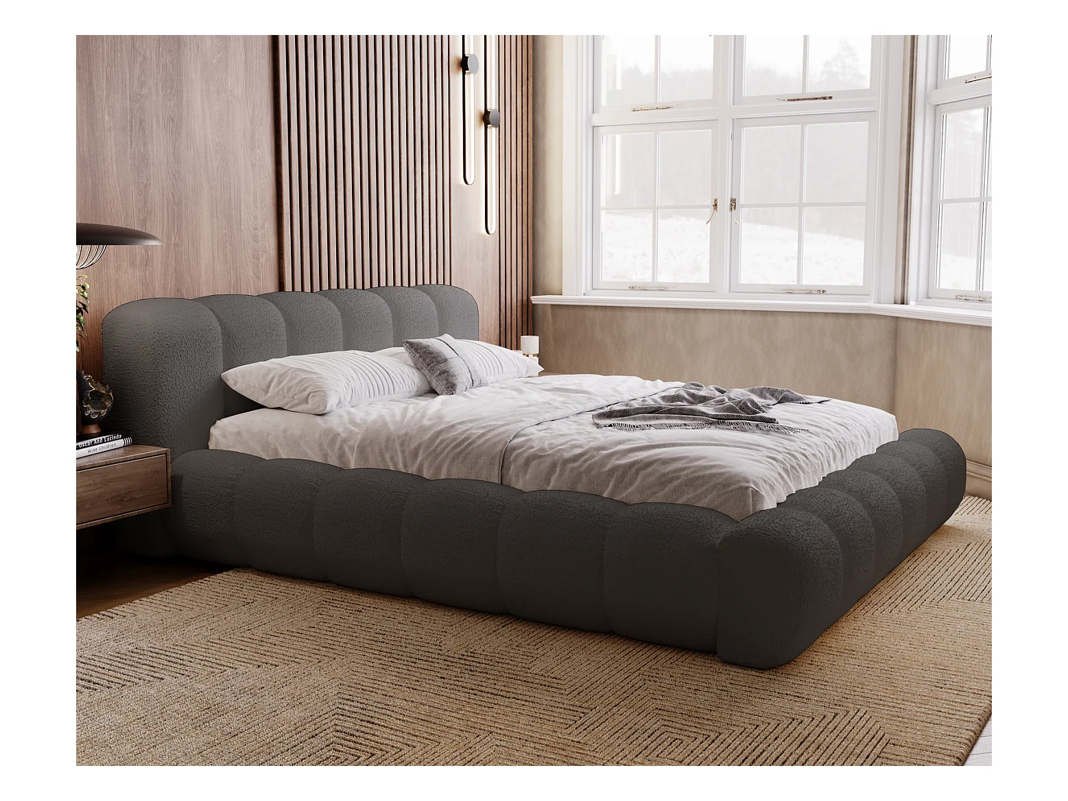 Emporius Cloud Lit rembourré 180x200 - Lit coffre avec rangement et sommier à lattes - Lit double 180x200 cm, tissu bouclé Gris foncé (Anthology 18)