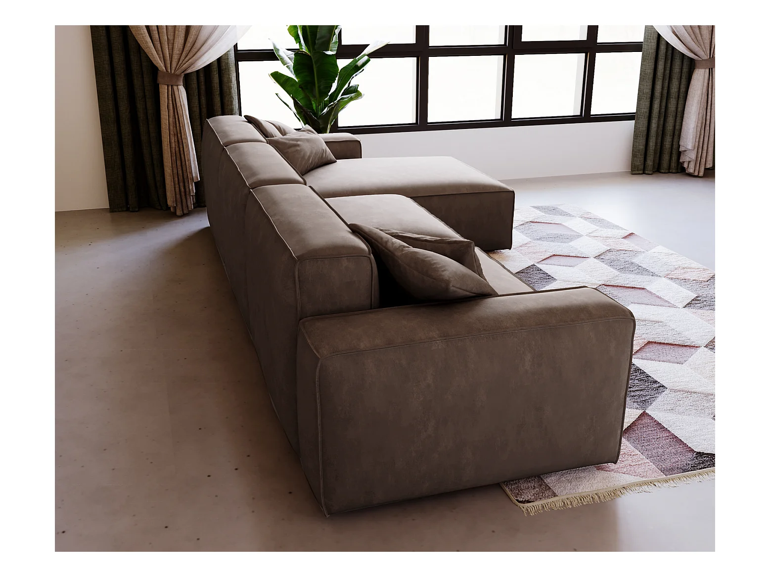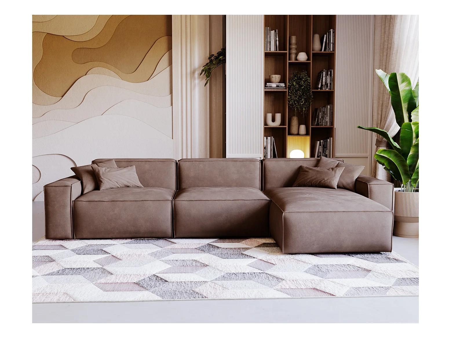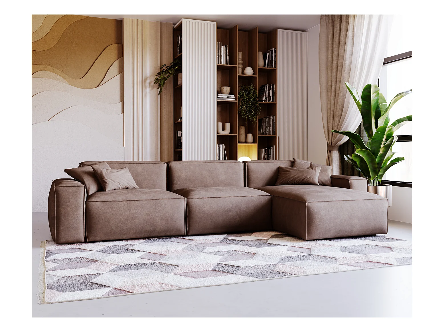 Emporius Figo Droit Canapé d'angle en Velours, Design, Modern - Canapé d'angle 265x180 cm Brun (Whisper 5)