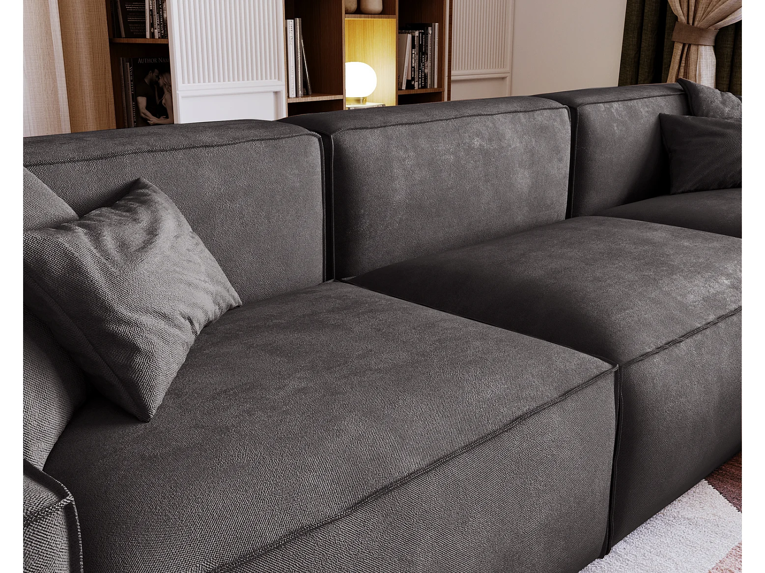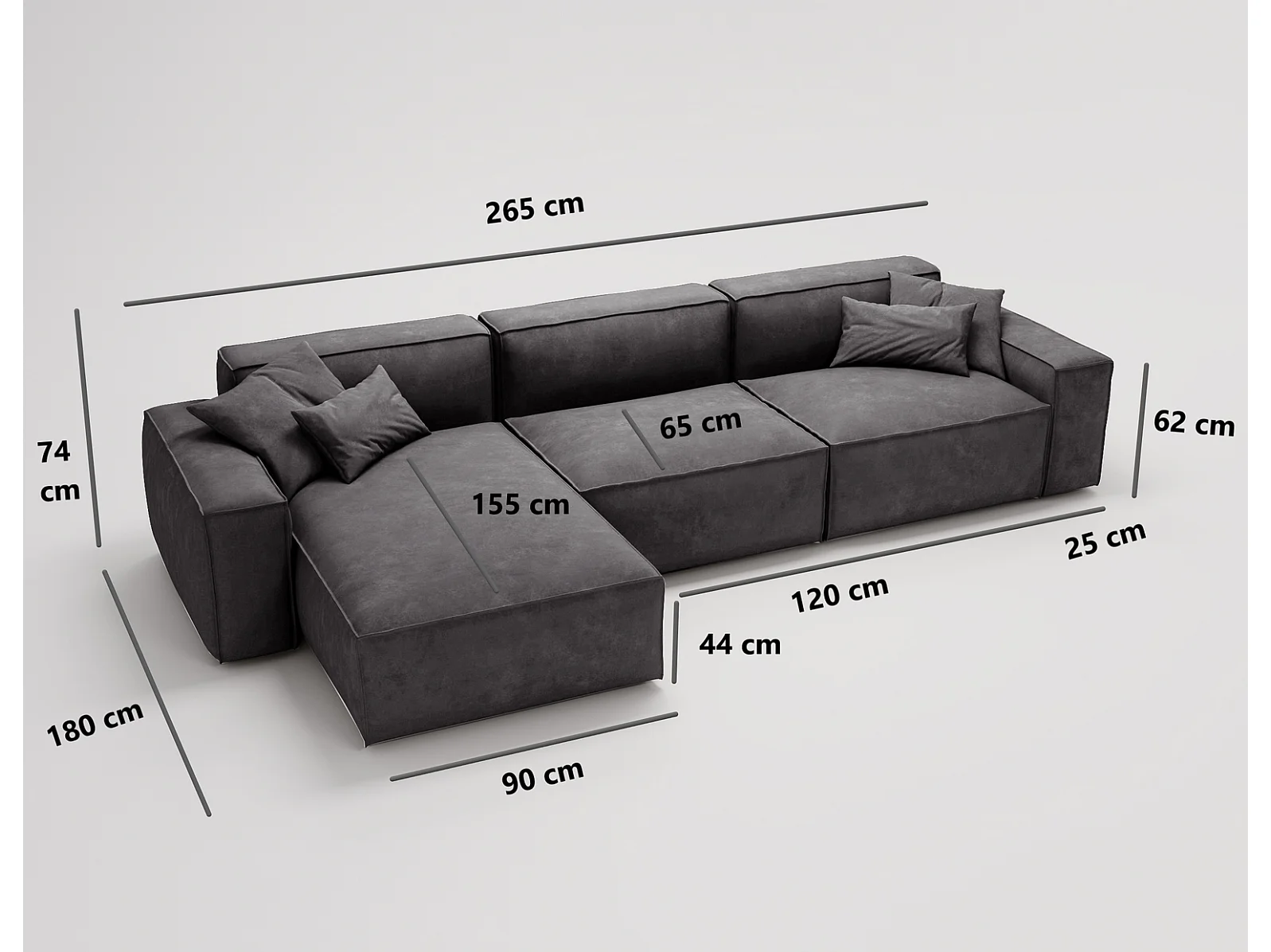 Emporius Figo Droit Canapé d'angle en Velours, Design, Modern - Canapé d'angle 265x180 cm Gris foncé (Whisper 15)