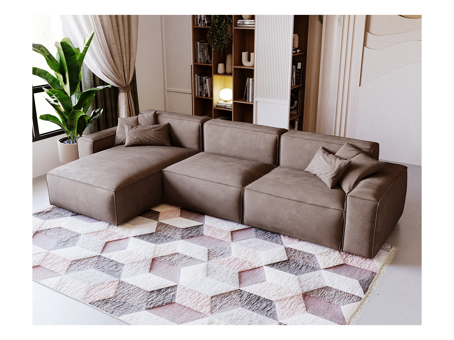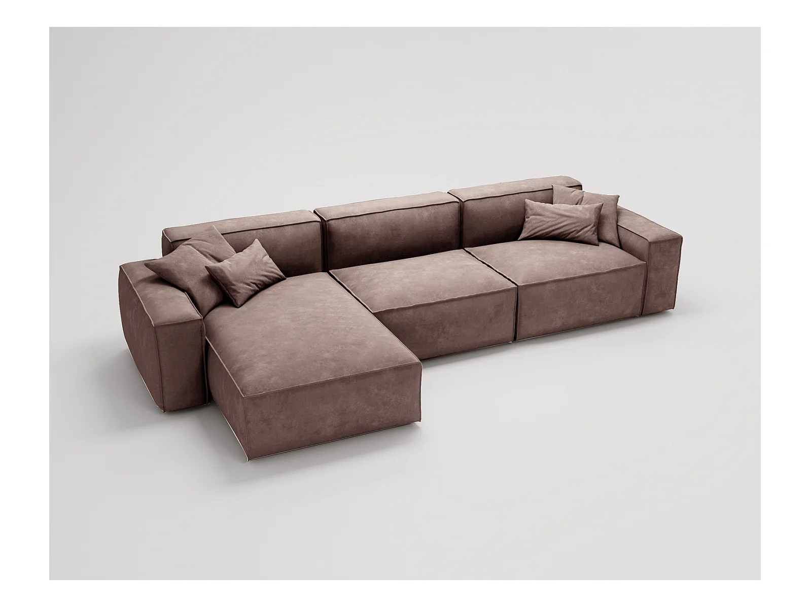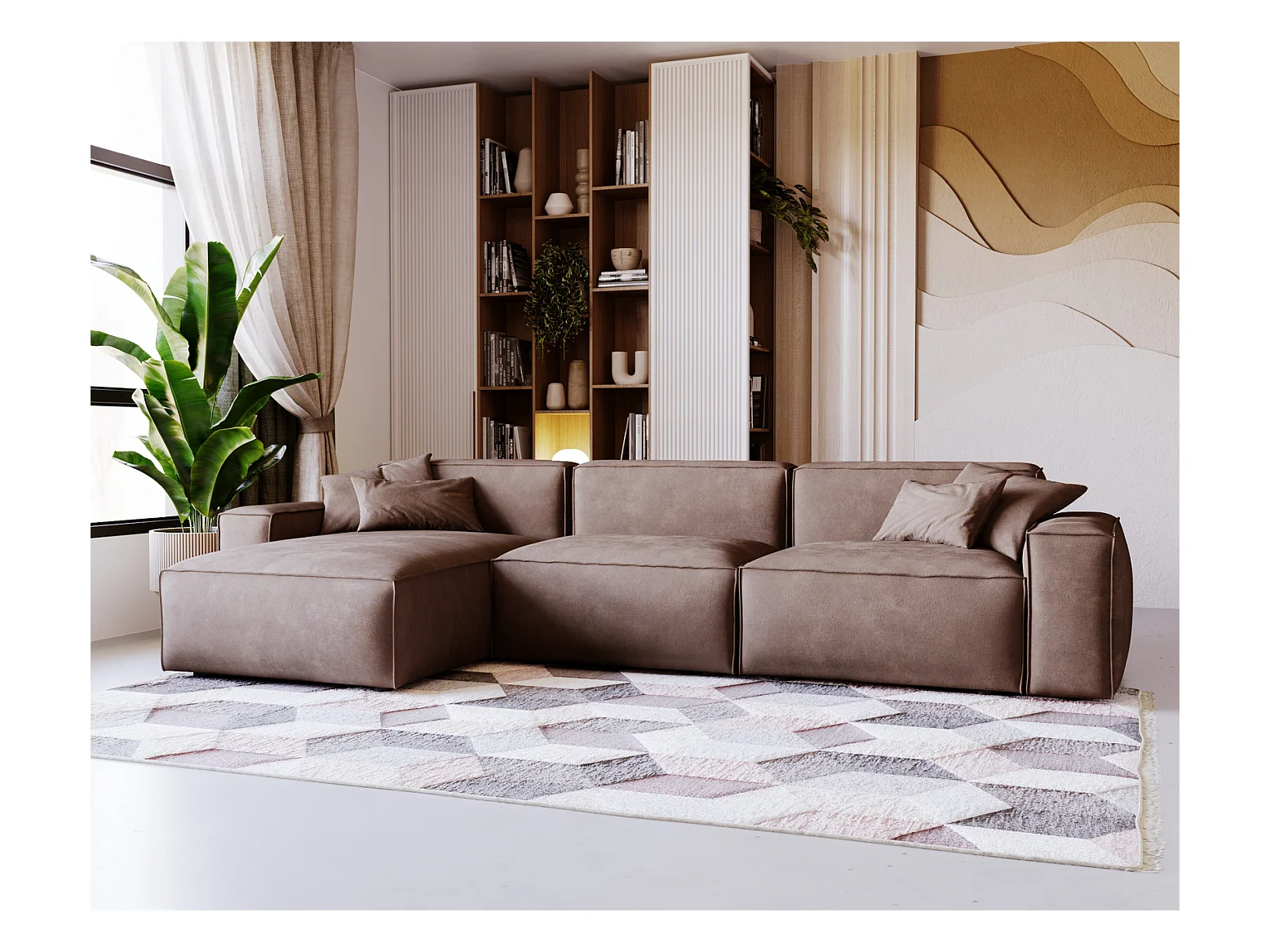 Emporius Figo Gauche Canapé d'angle en Velours, Design, Modern - Canapé d'angle 265x180 cm Brun (Whisper 5)