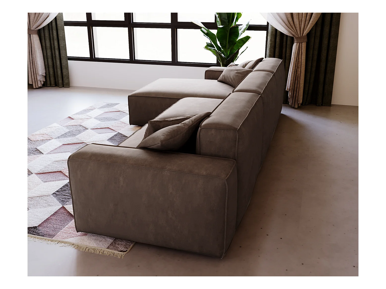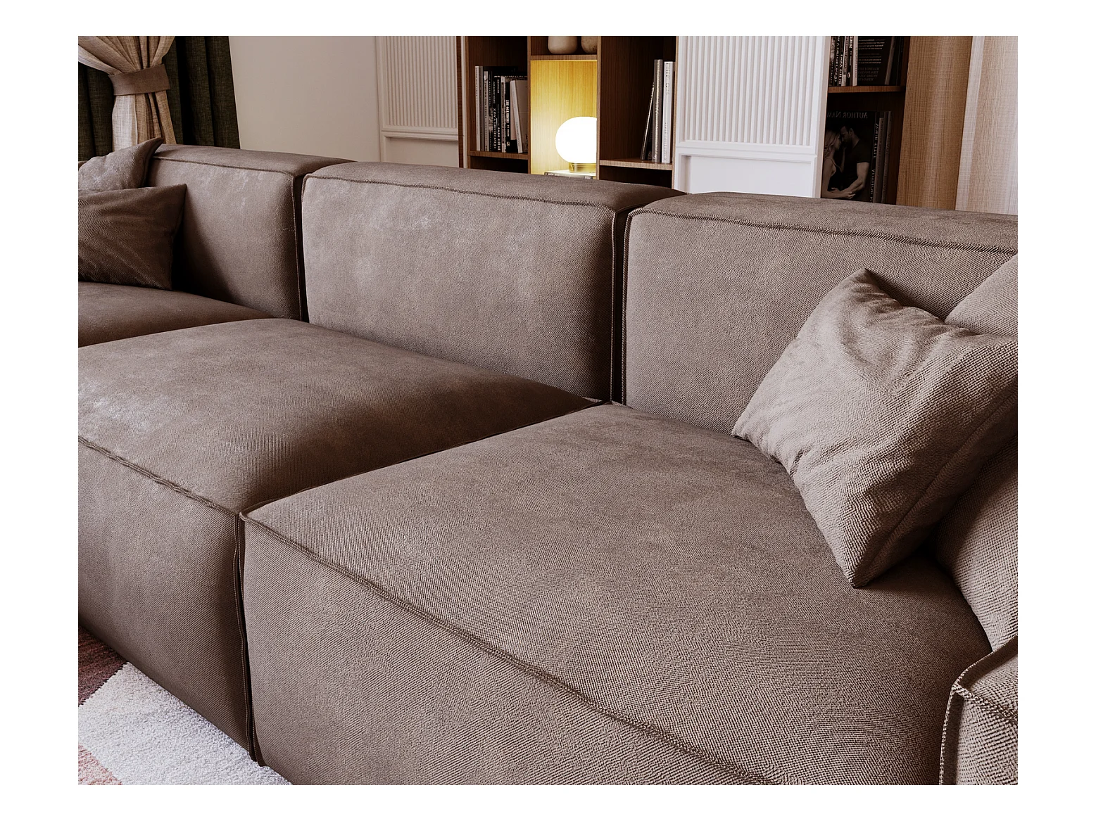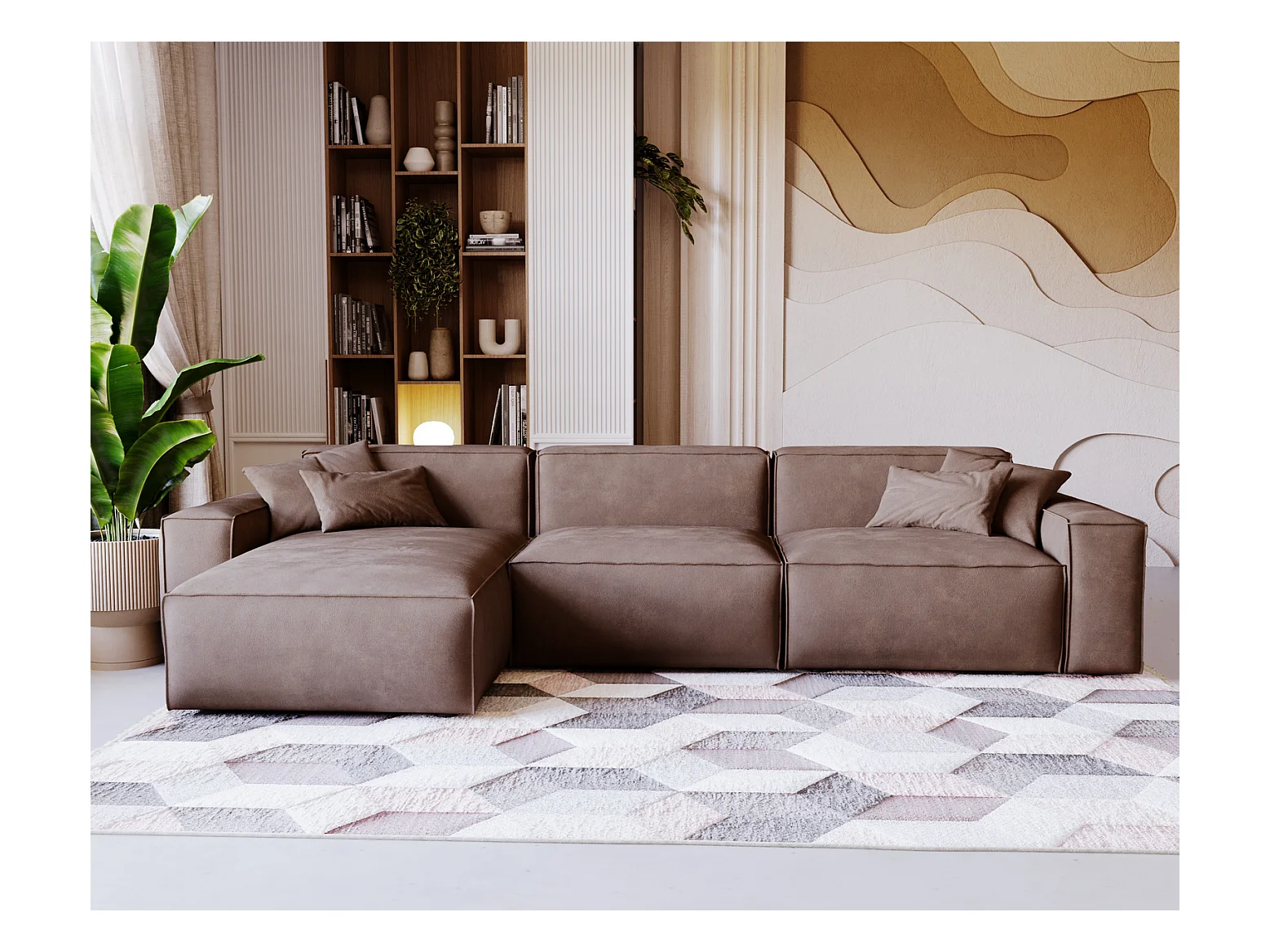 Emporius Figo Gauche Canapé d'angle en Velours, Design, Modern - Canapé d'angle 265x180 cm Brun (Whisper 5)