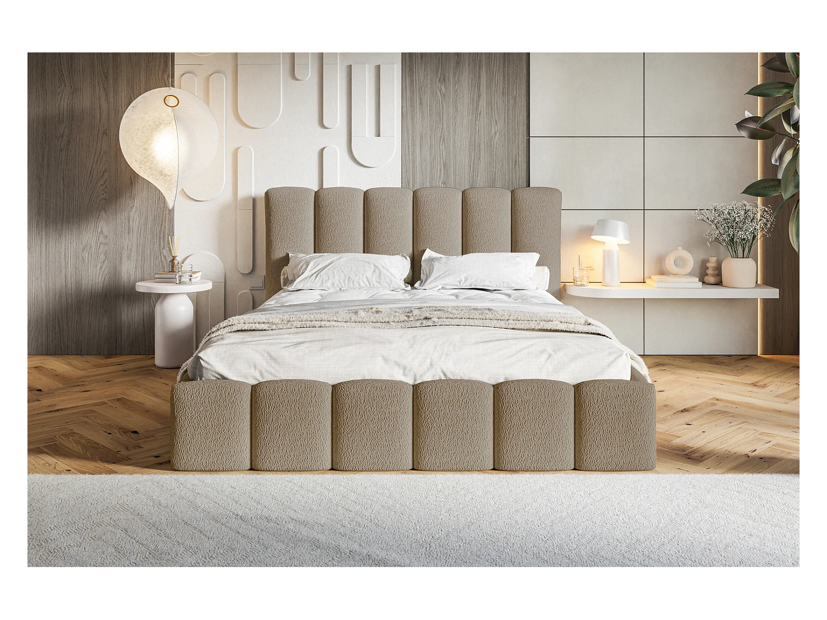 Emporius Lit Rembourré 140 x 200 cm avec Rangement Palermo - Lit Double 140x200, tissu bouclé Brun (Anthology 5)