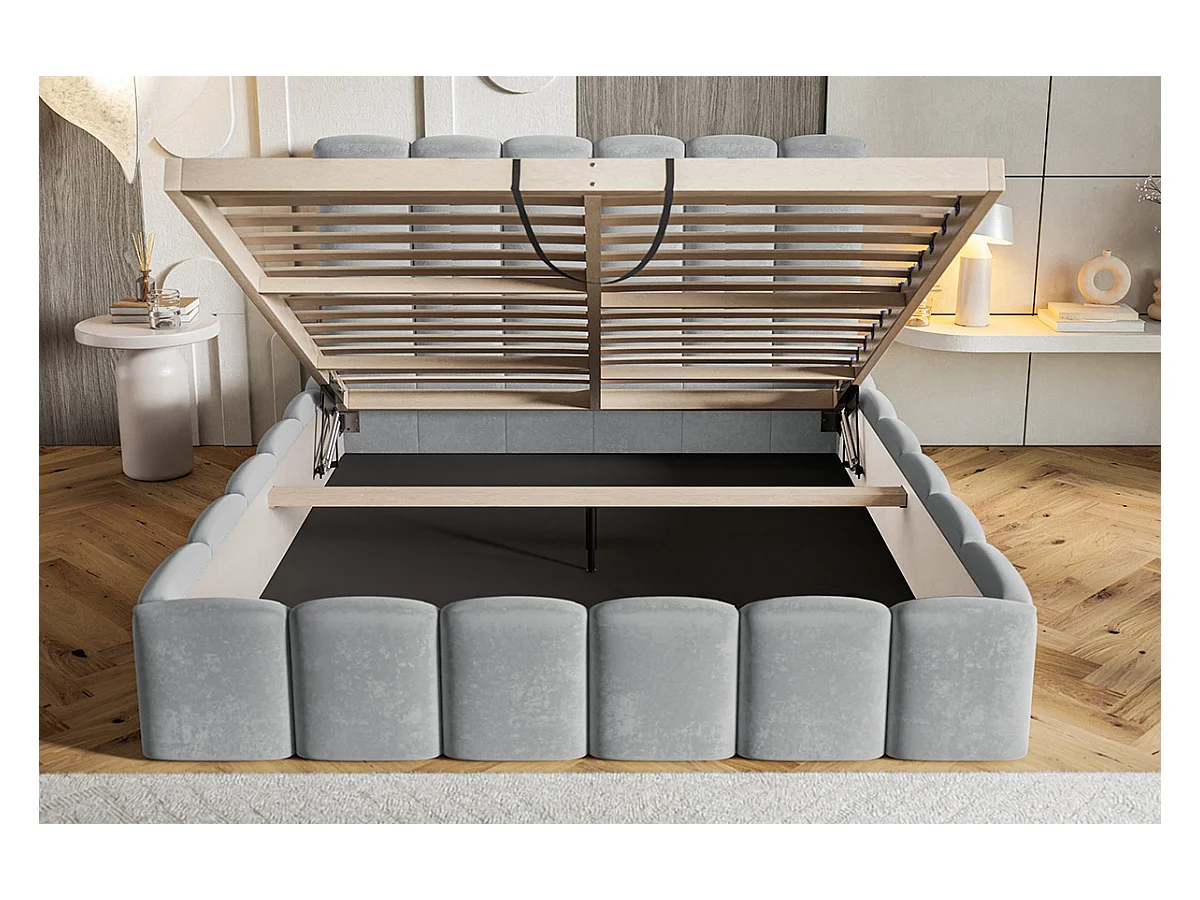 Emporius Lit Rembourré 140 x 200 cm avec Rangement Palermo - Lit Double 140x200, tissu bouclé Crème (Anthology 1)