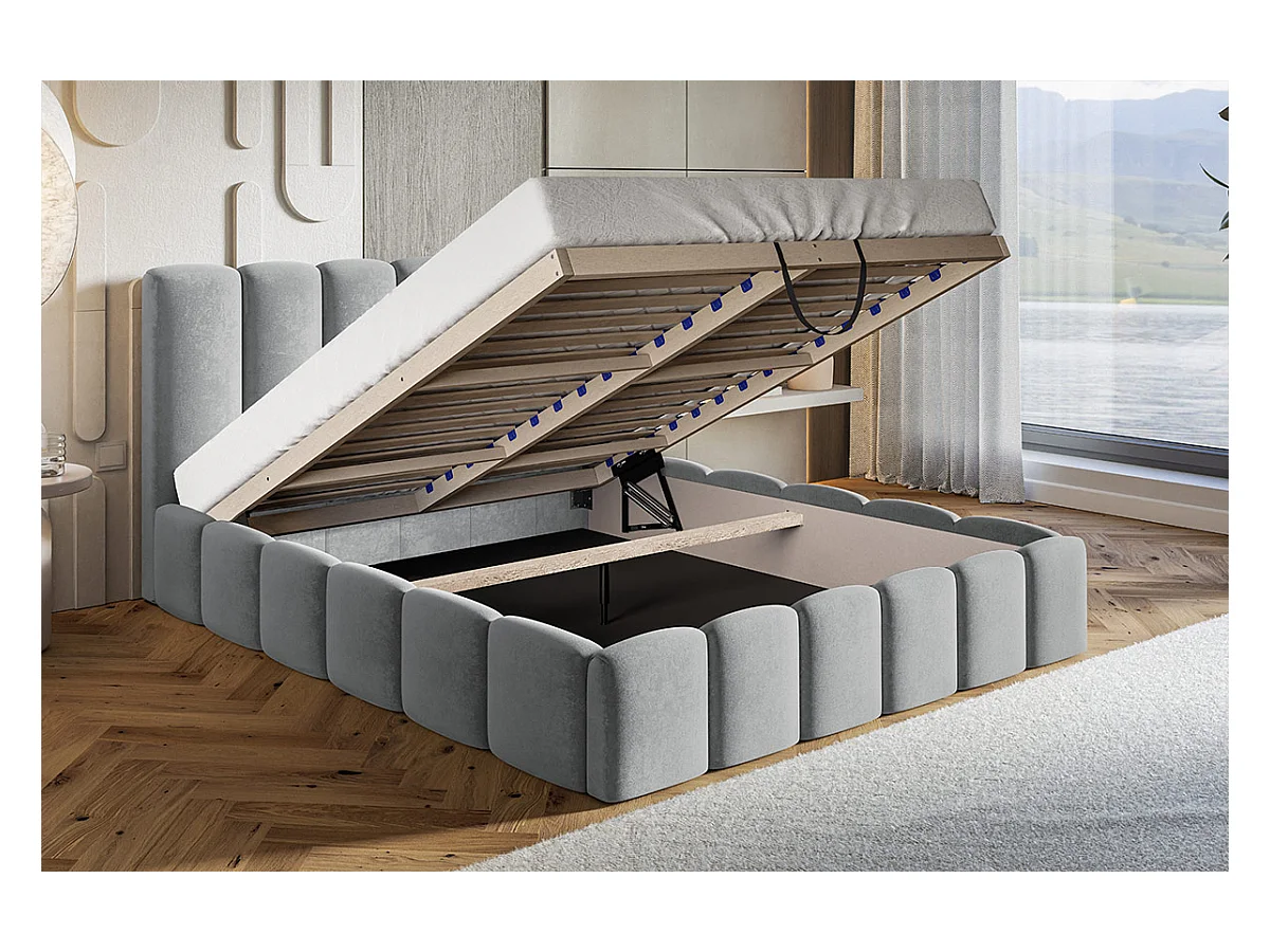 Emporius Lit Rembourré 180 x 200 cm avec Rangement Palermo - Lit Double 180x200, tissu bouclé Brun (Anthology 5)
