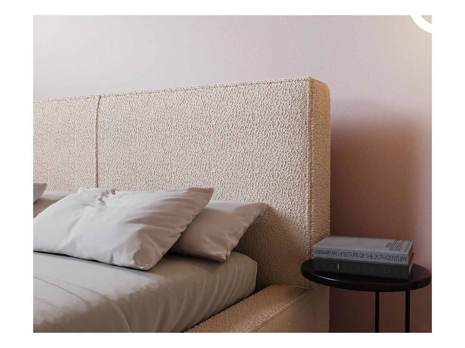 Emporius Morin lit double 160x200 avec rangement, sommier à lattes, tête de lit - lit bouclé 160x200 Crème (Anthology 1)