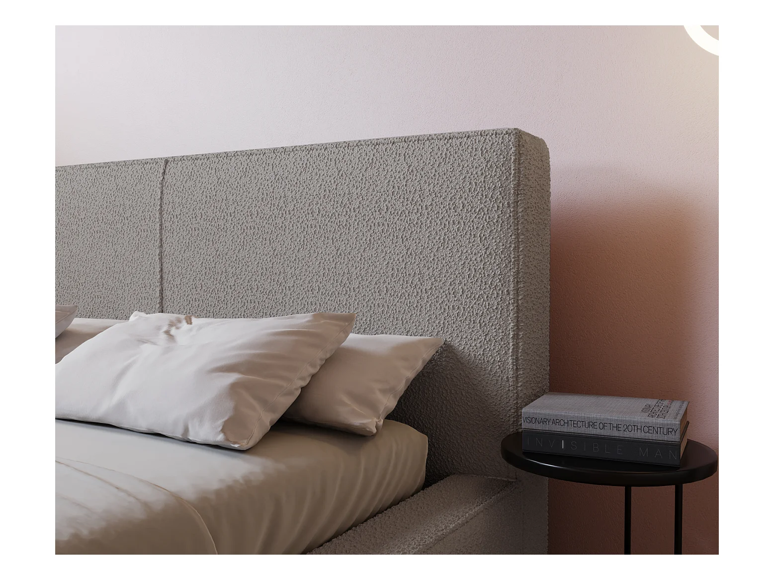 Emporius Morin lit double 200x200 avec rangement, sommier à lattes, tête de lit - lit bouclé 200x200 Gris clair (Anthology 15)