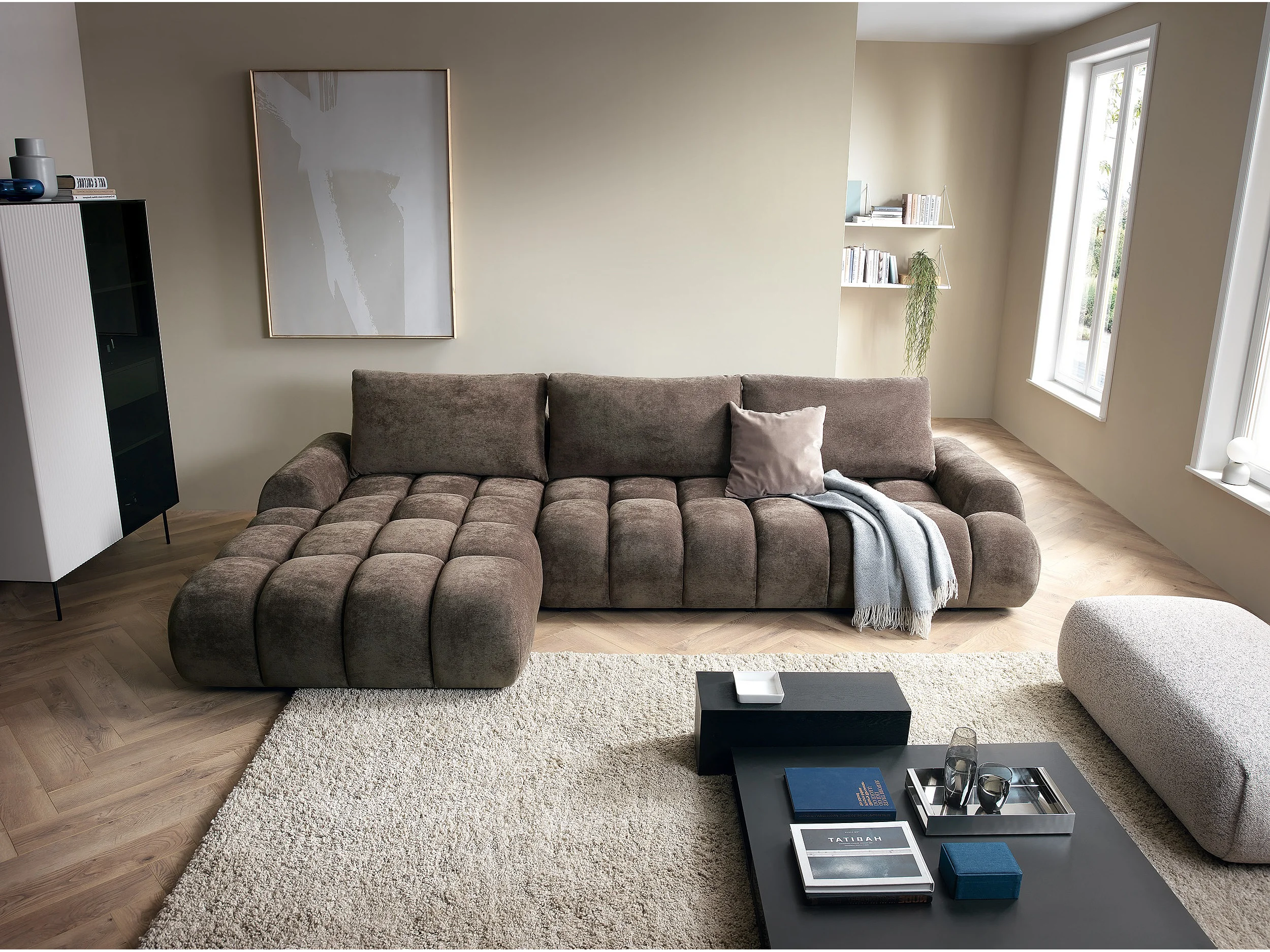 Emporius Valerio Canapé d'angle Convertible - Canapé 340 cm, Gauche - Velours Brun (Ditra New 29)