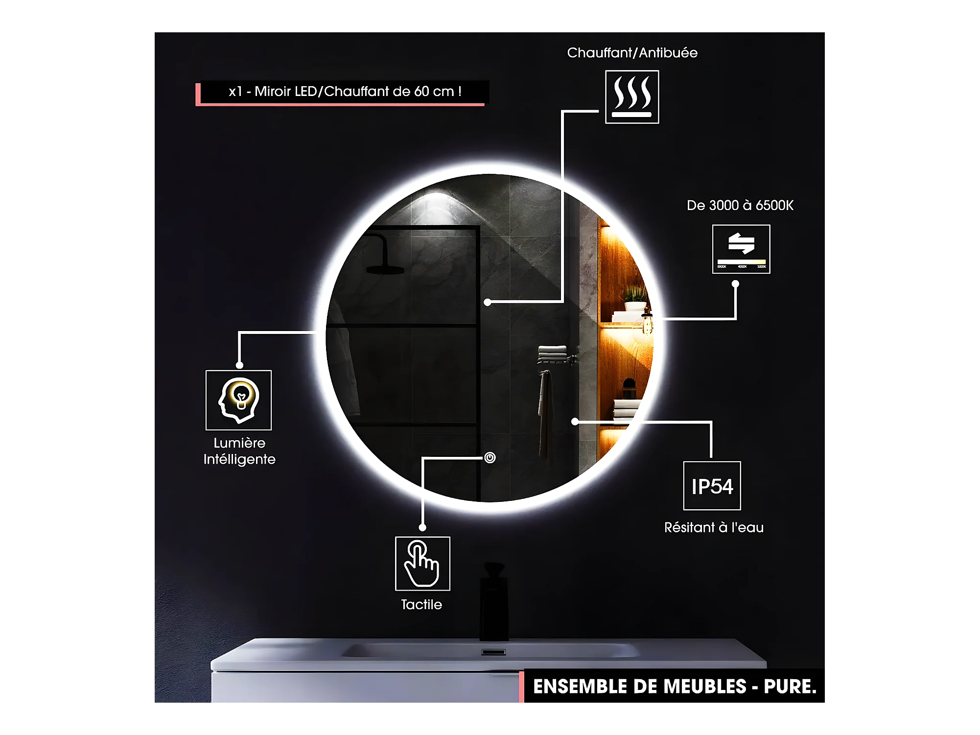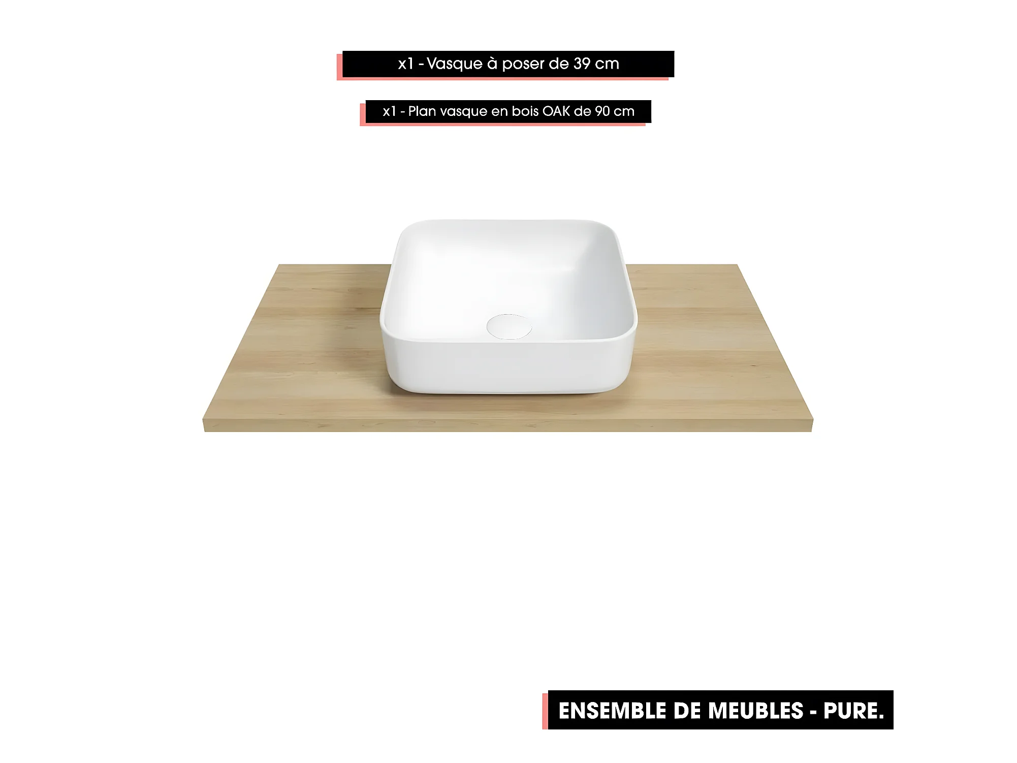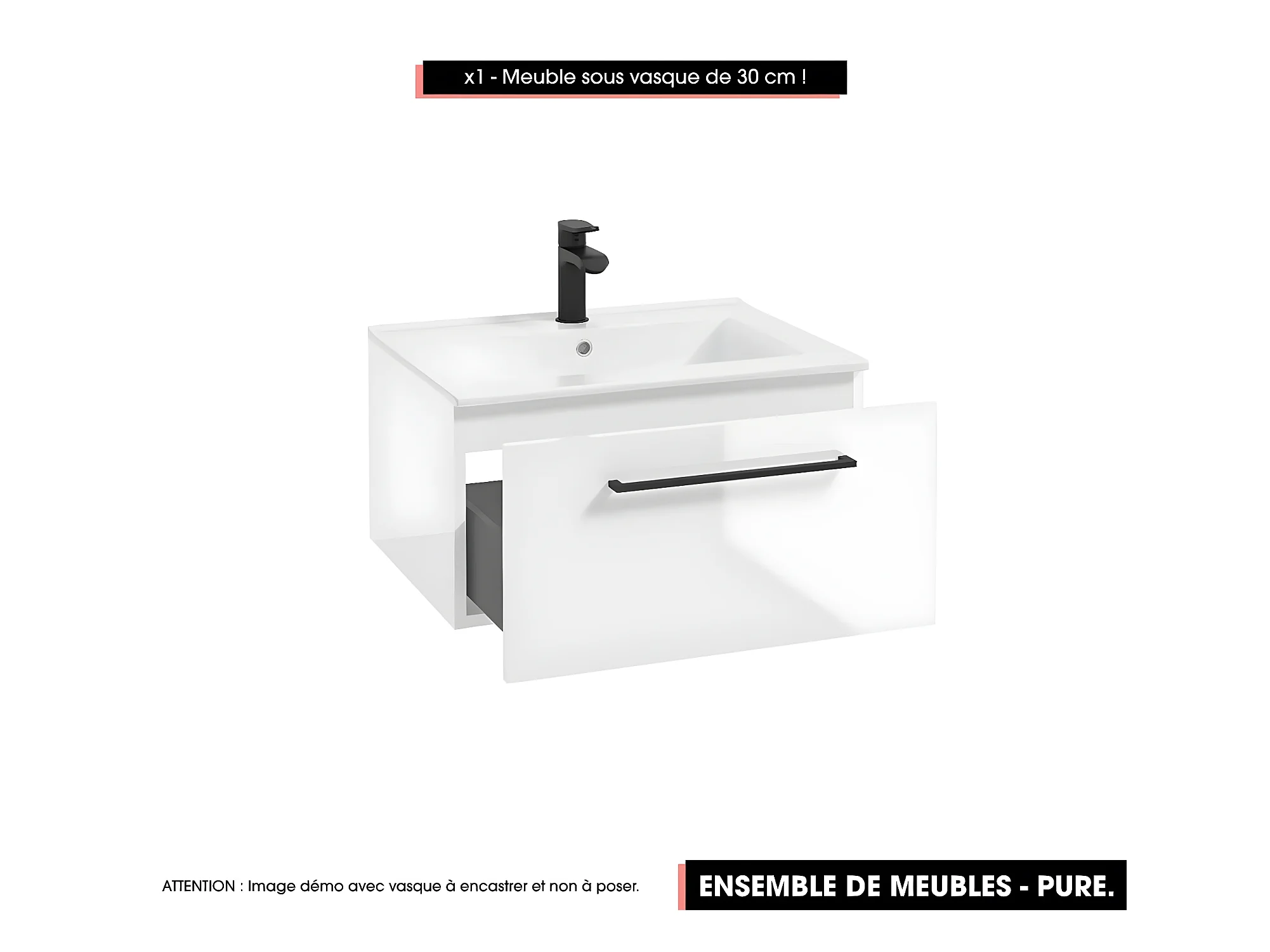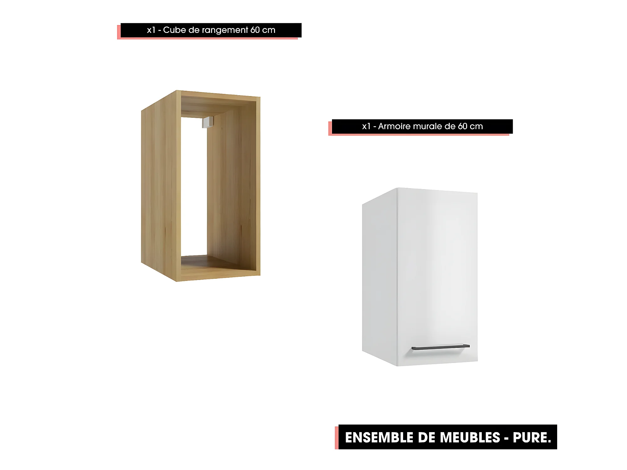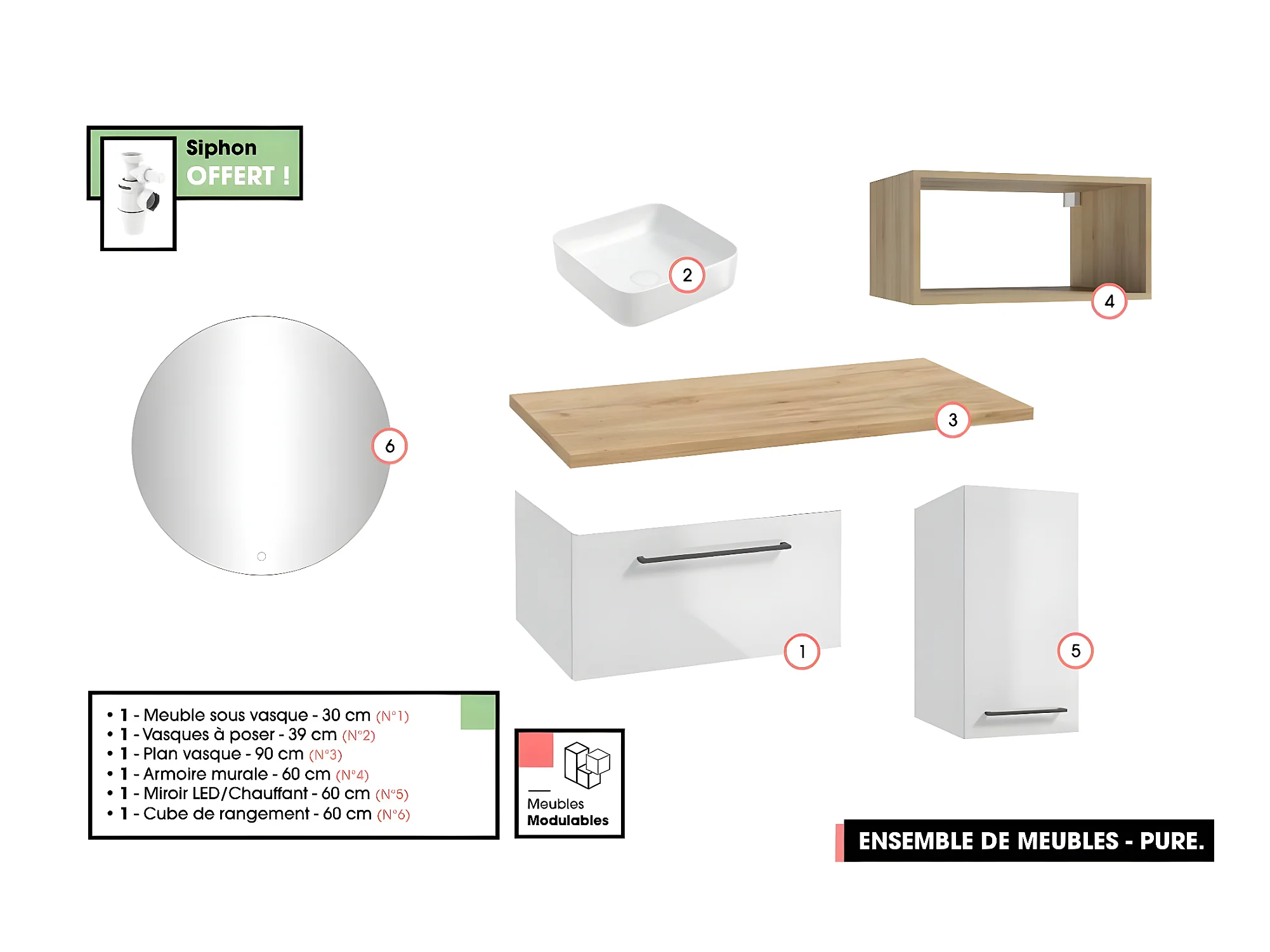 Emsemble complet de salle de bain - Meuble - Armoire - Miroir - Cube - Vasque à poser avec Siphon OFFERT | PURE | Blanc | 60 x 60 x 45 cm