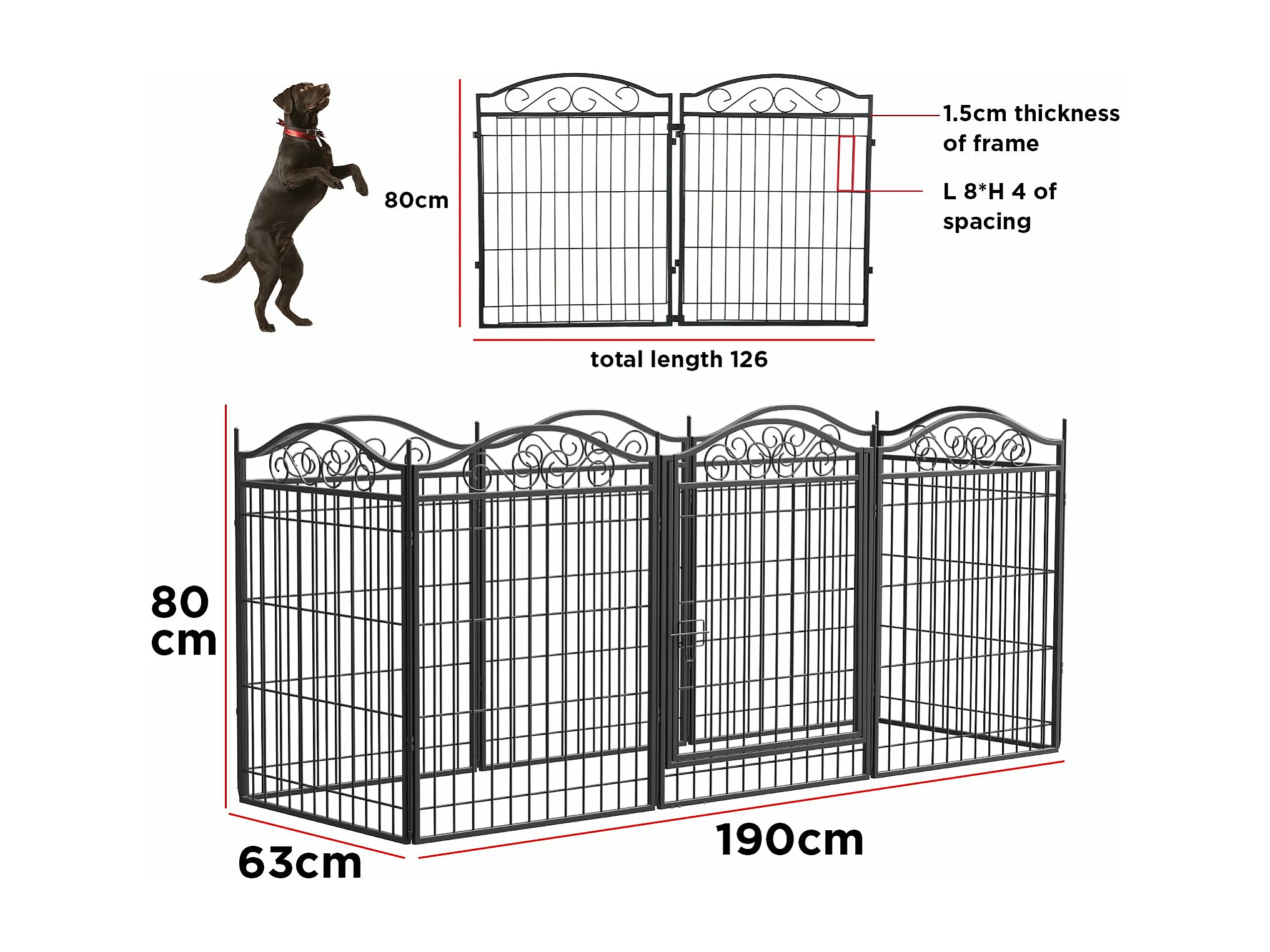 Enclos chien exterieur interieur grande taille parc en métal pour chien chiot lapin 190x63x80cm