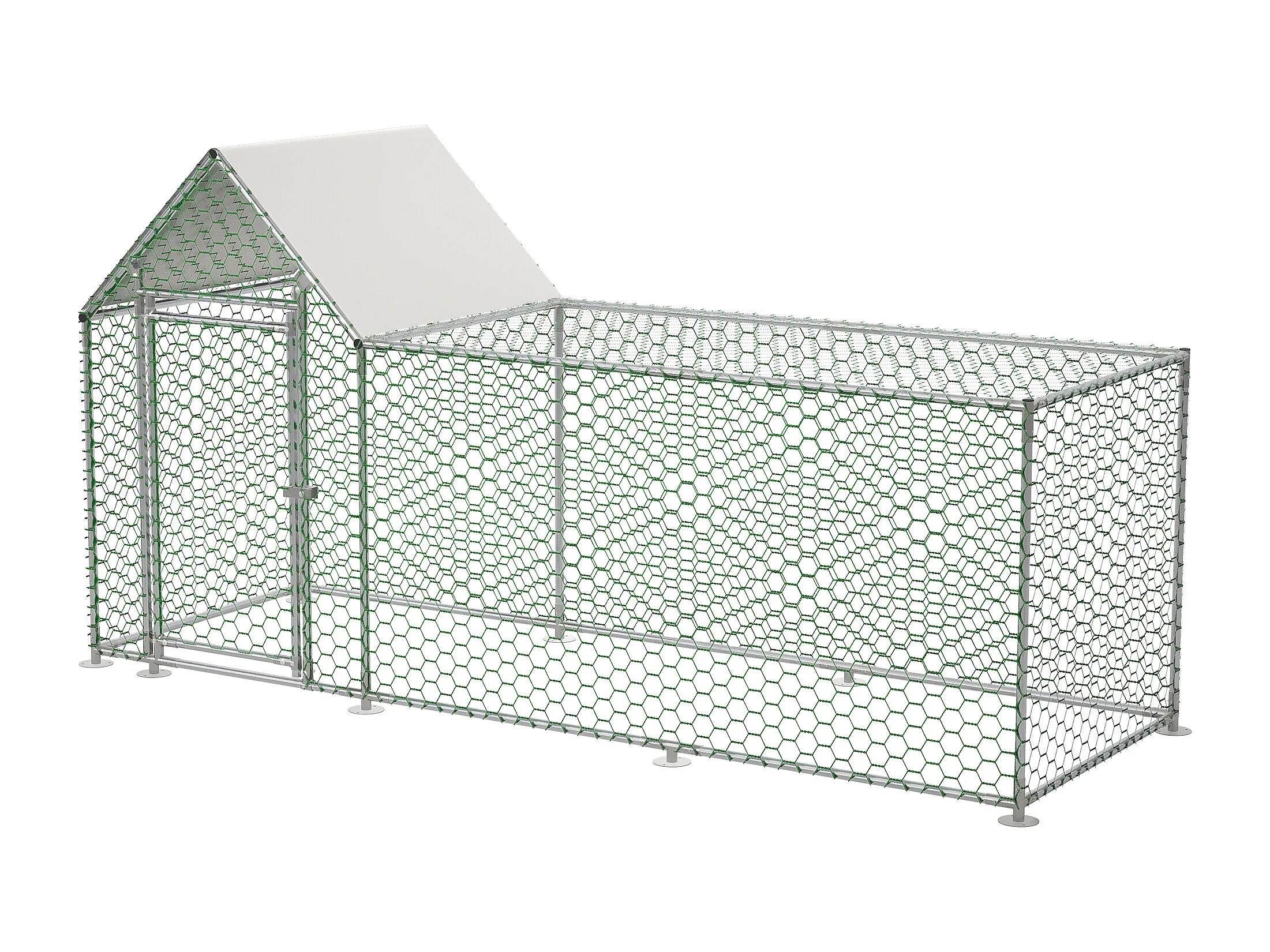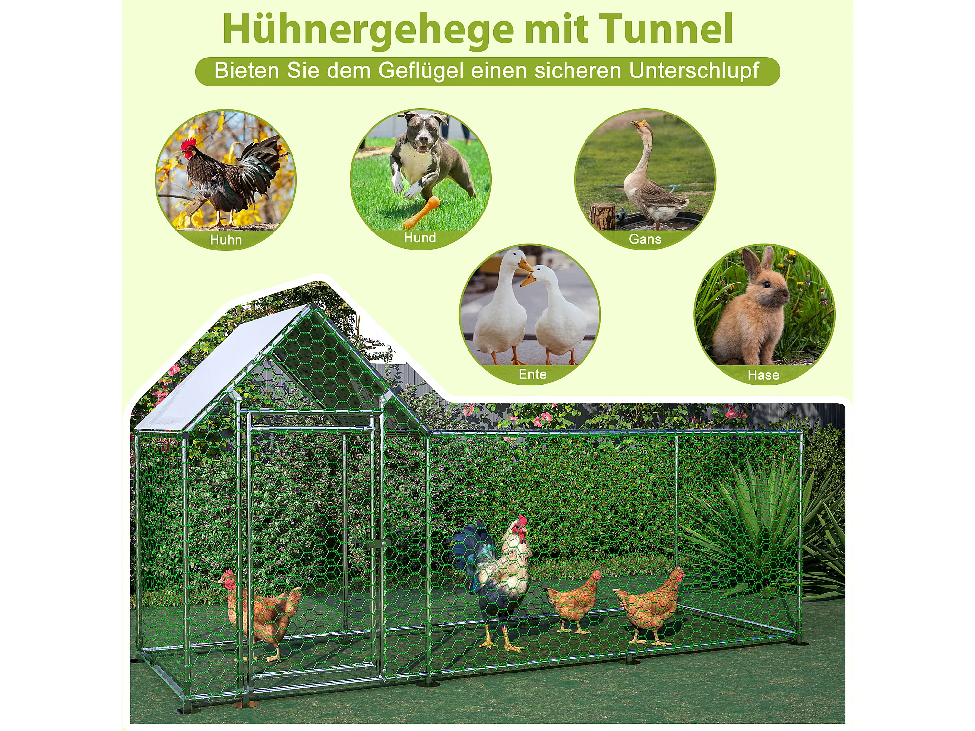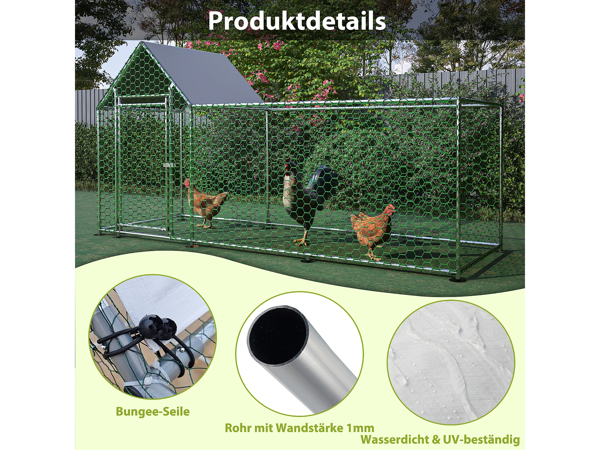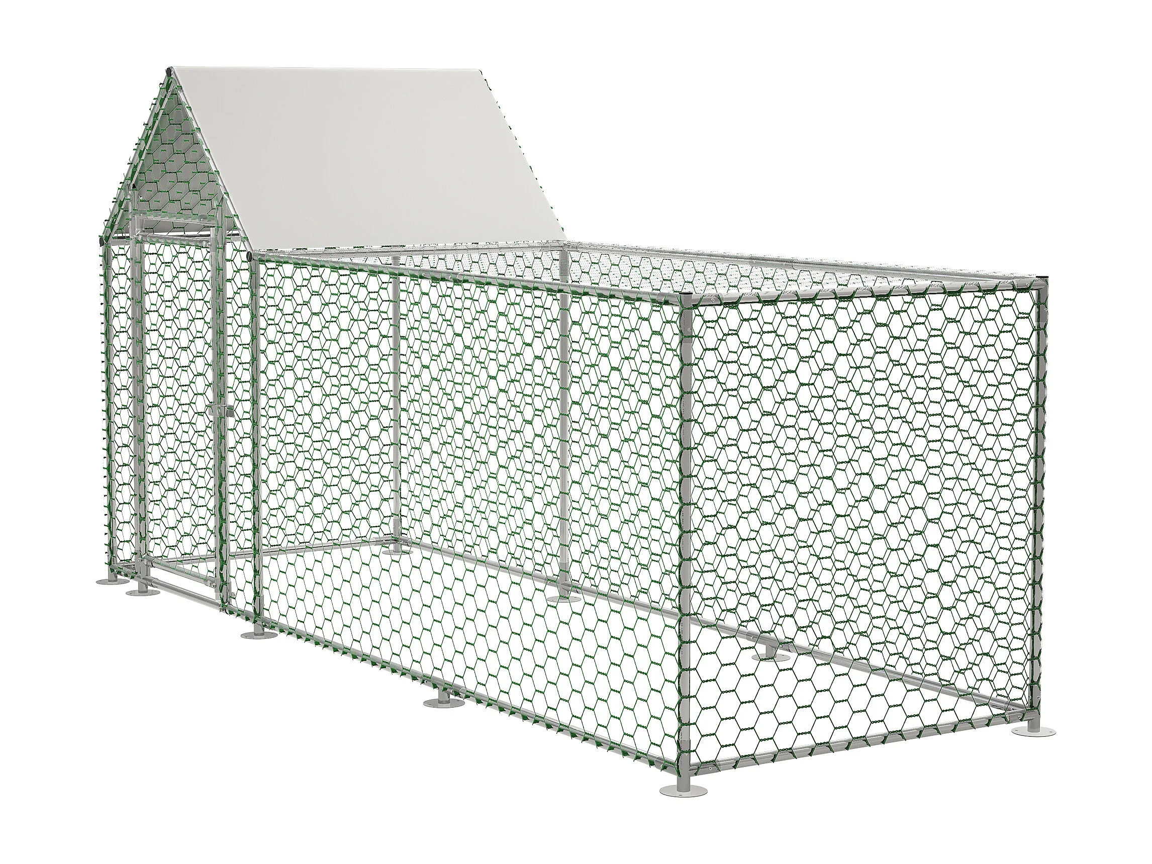 Enclos extérieur volaille, métal, bâche PE étanche, serrure, argenté (300x100x150cm)