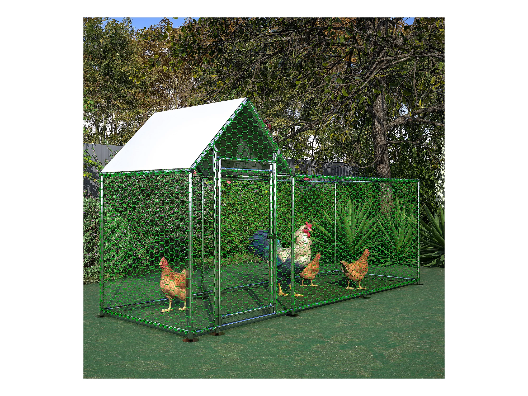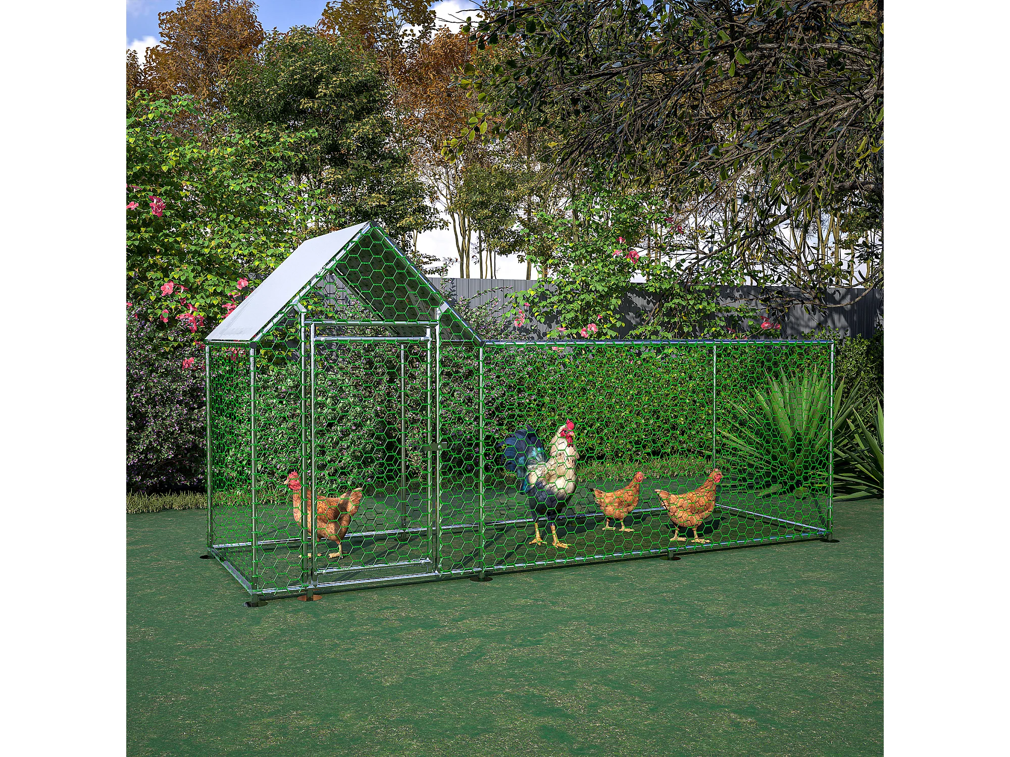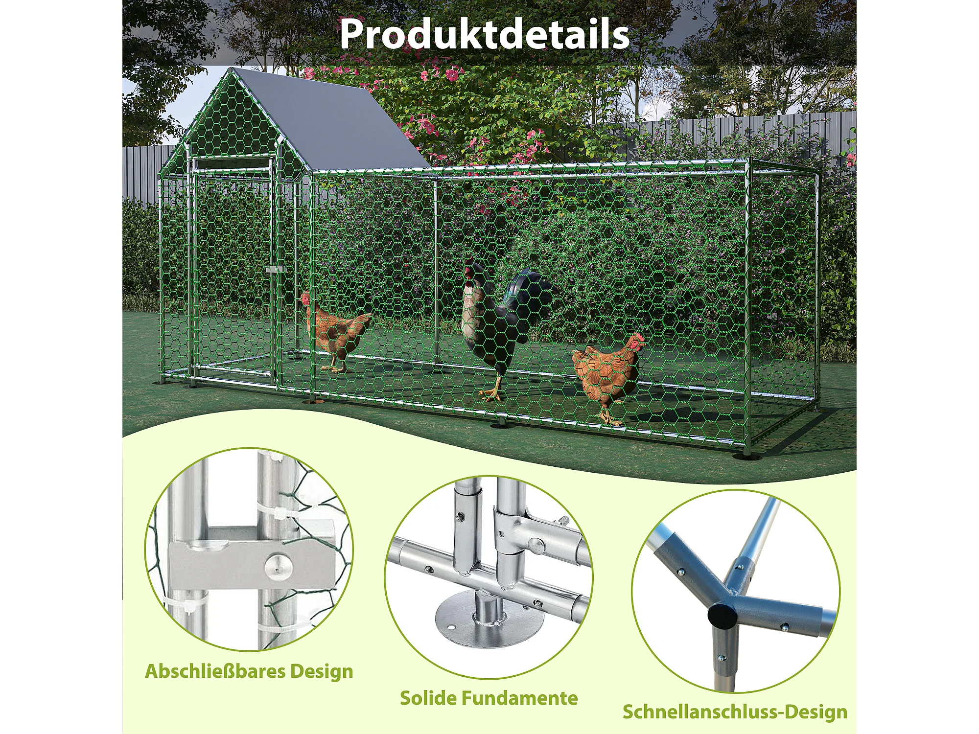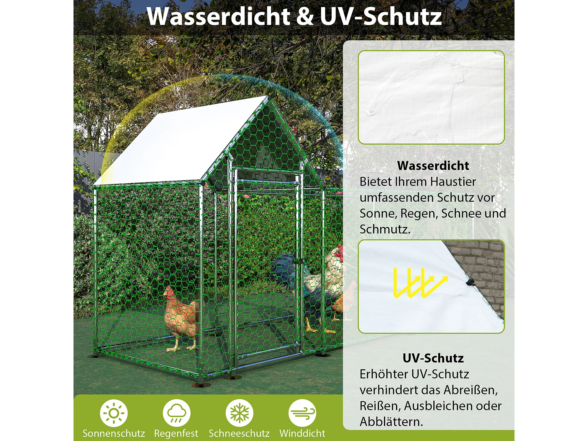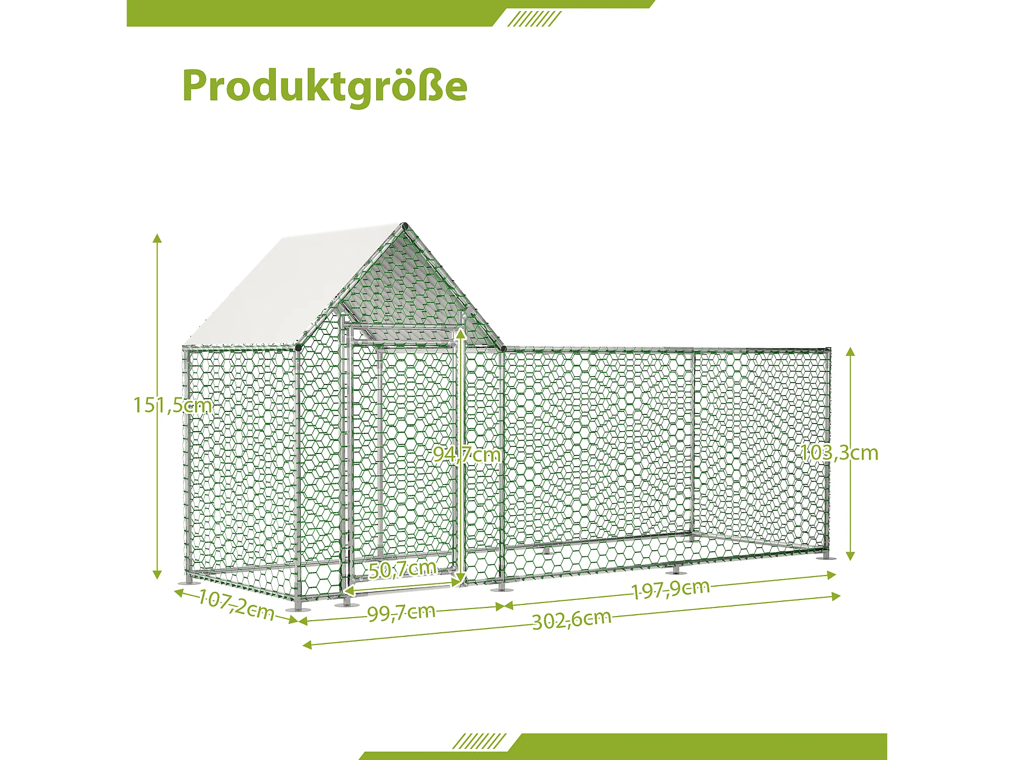 Enclos extérieur volaille, métal, bâche PE étanche, serrure, argenté (300x100x150cm)