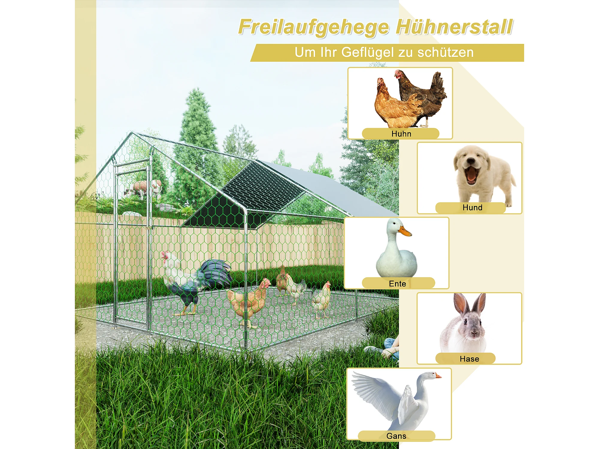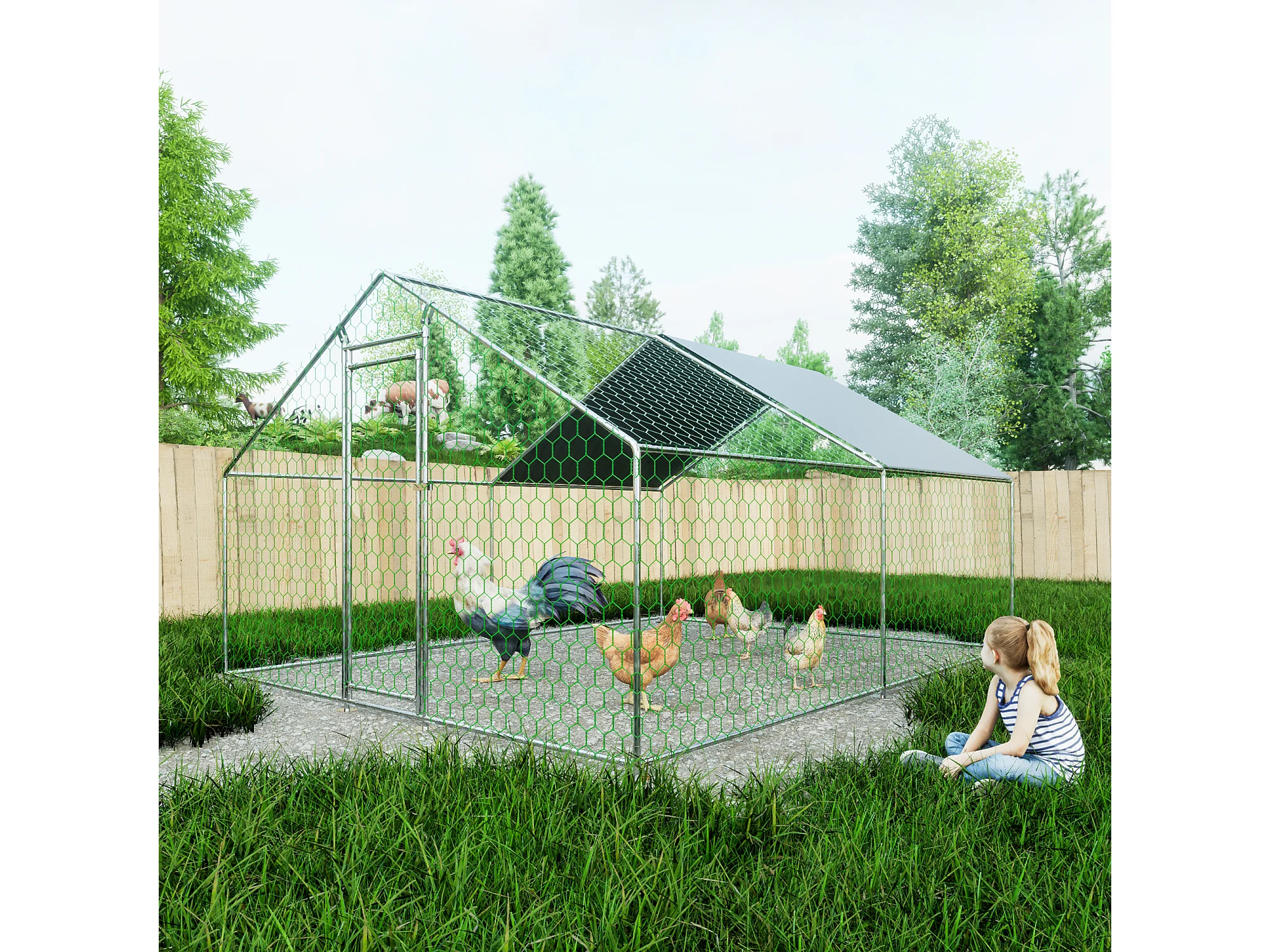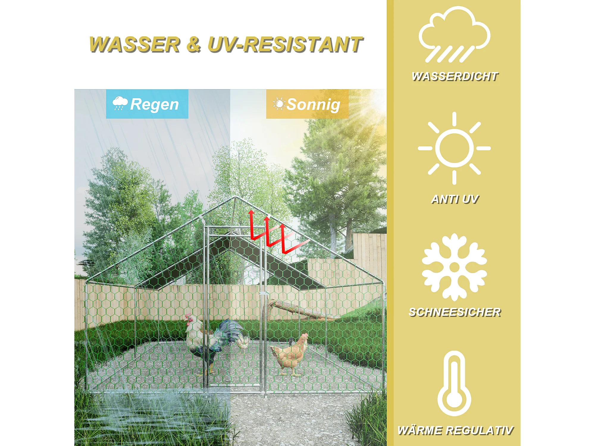 Enclos extérieur volailles/animaux, métal, bâche PE imperméable, serrure, argenté (300x400x200cm)