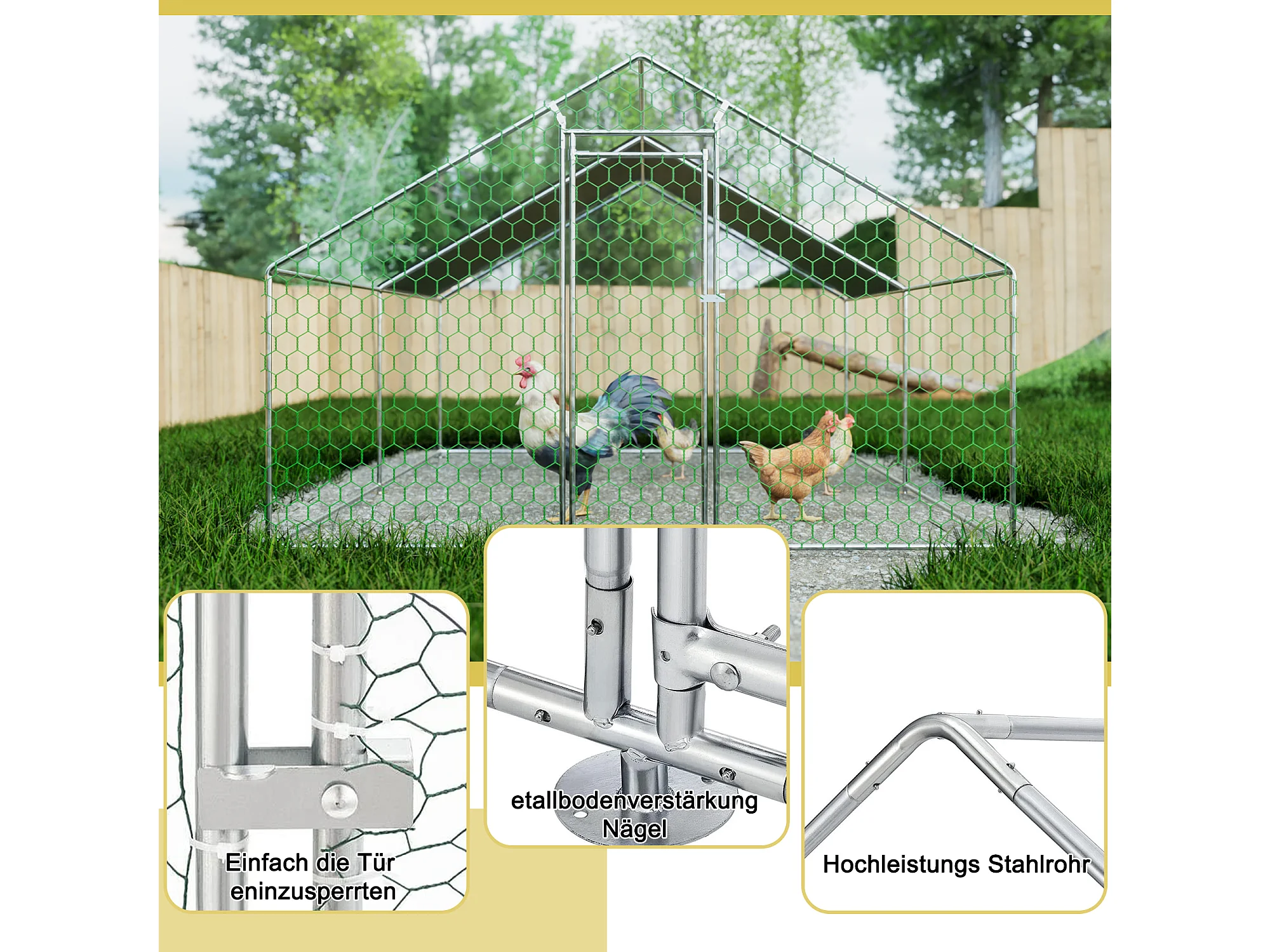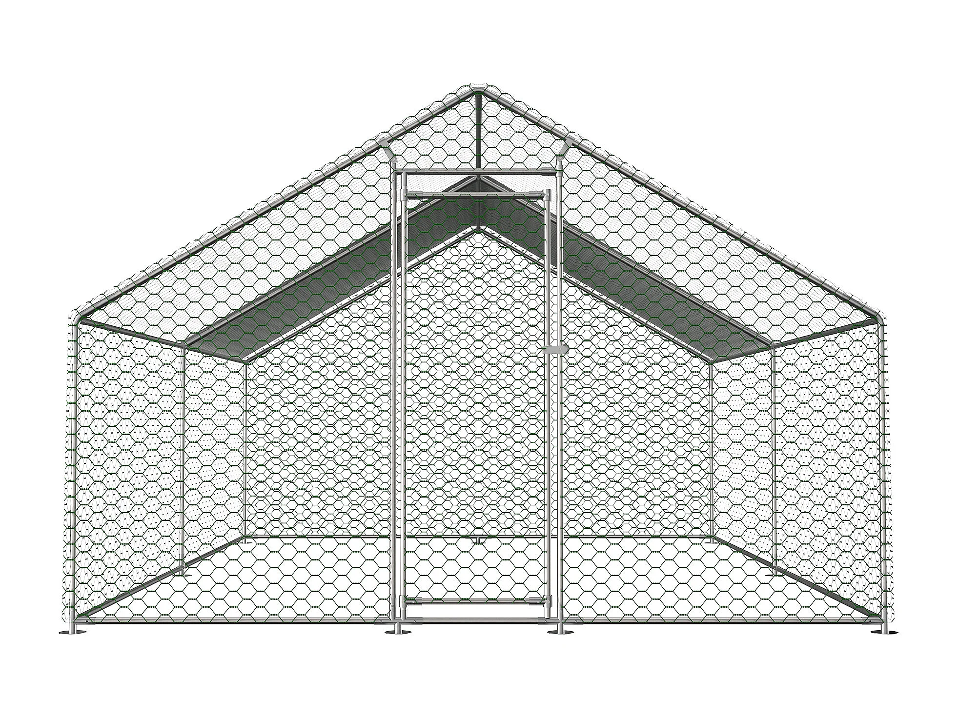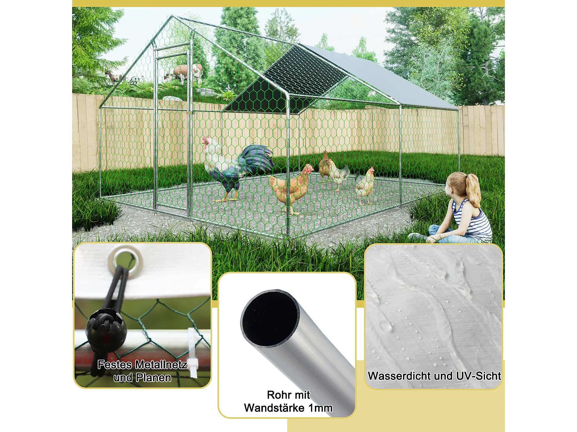 Enclos extérieur volailles/animaux, métal, bâche PE imperméable, serrure, argenté (300x400x200cm)