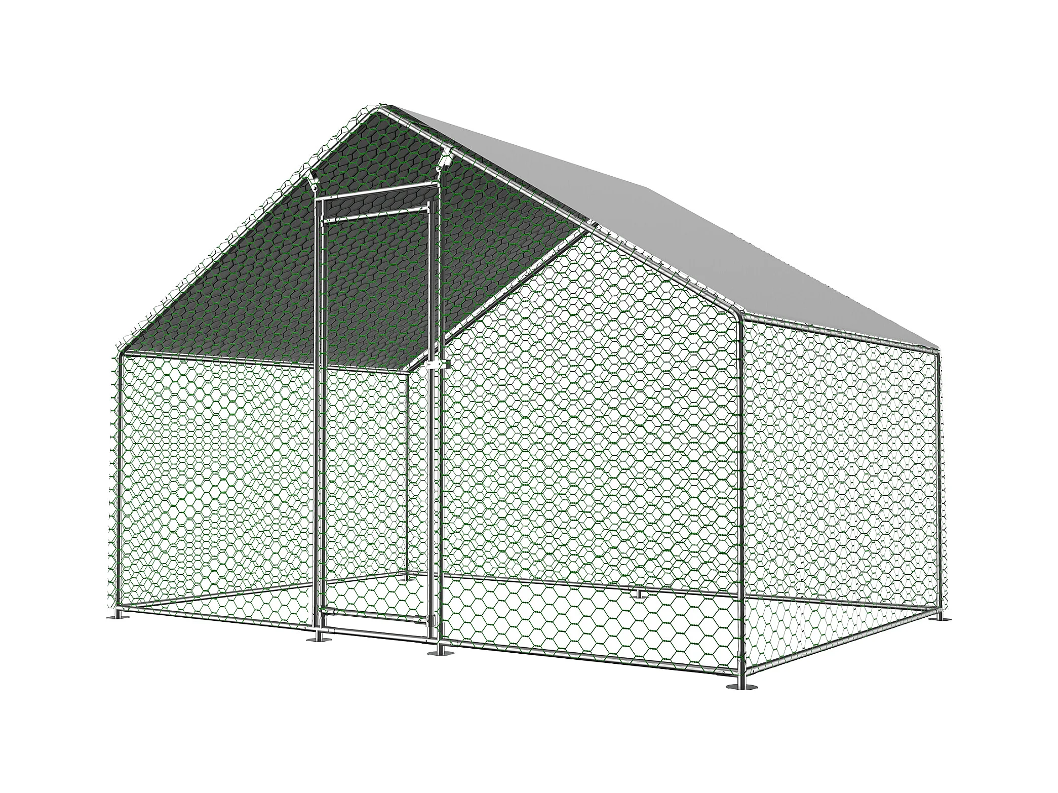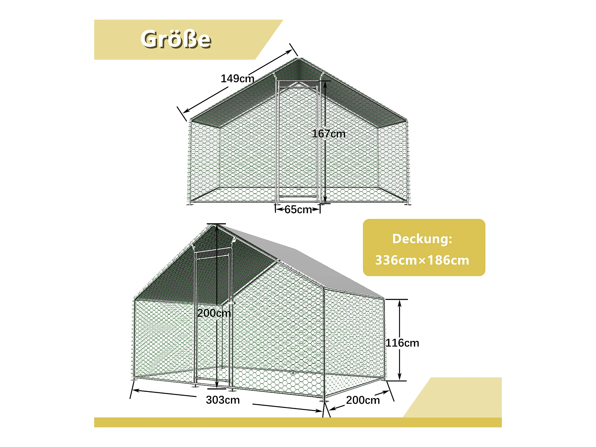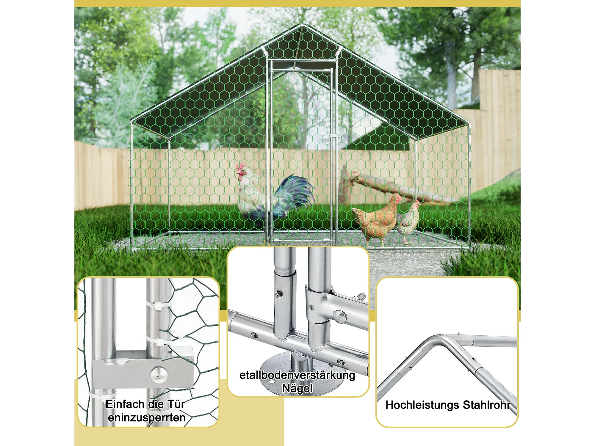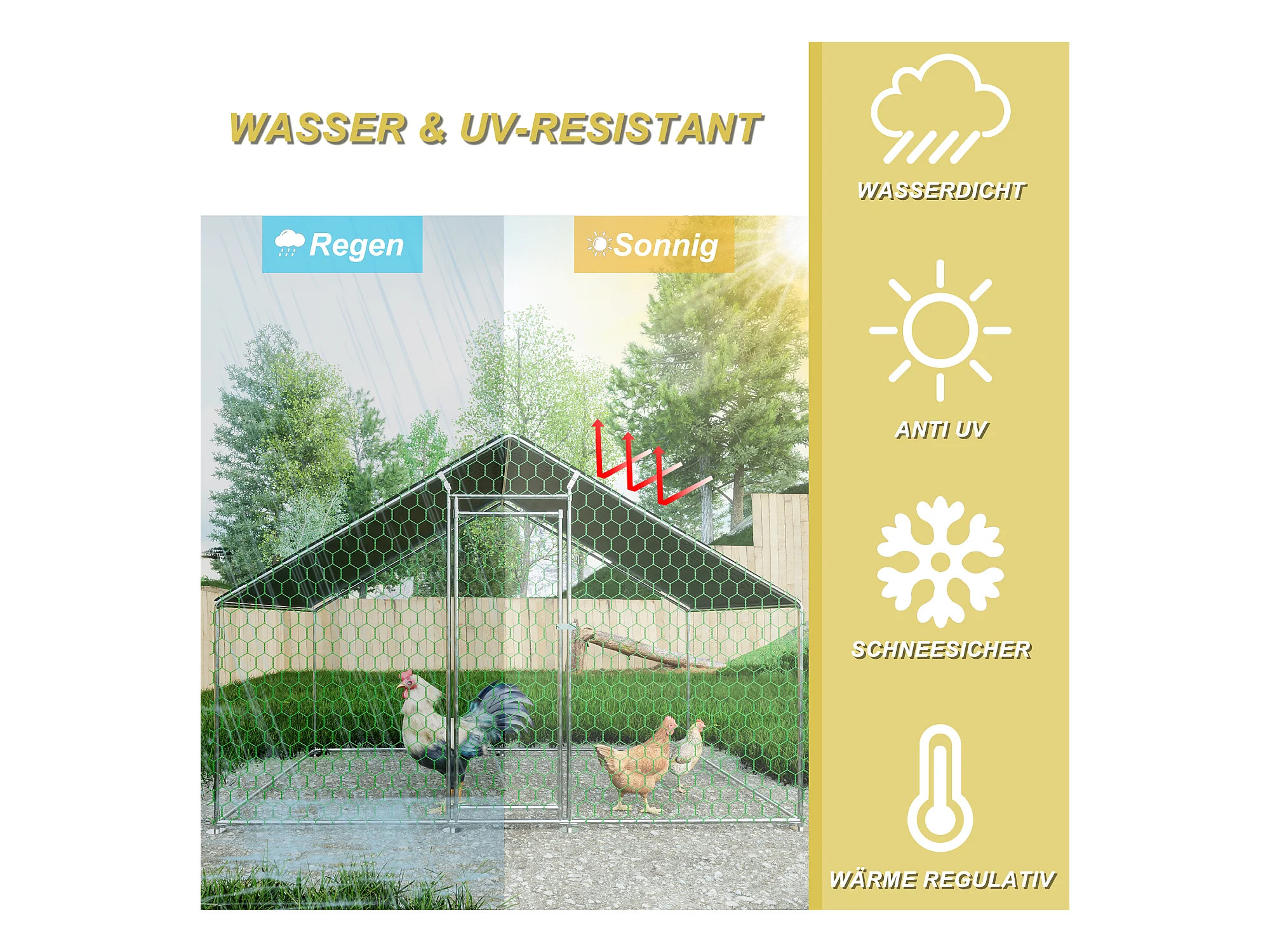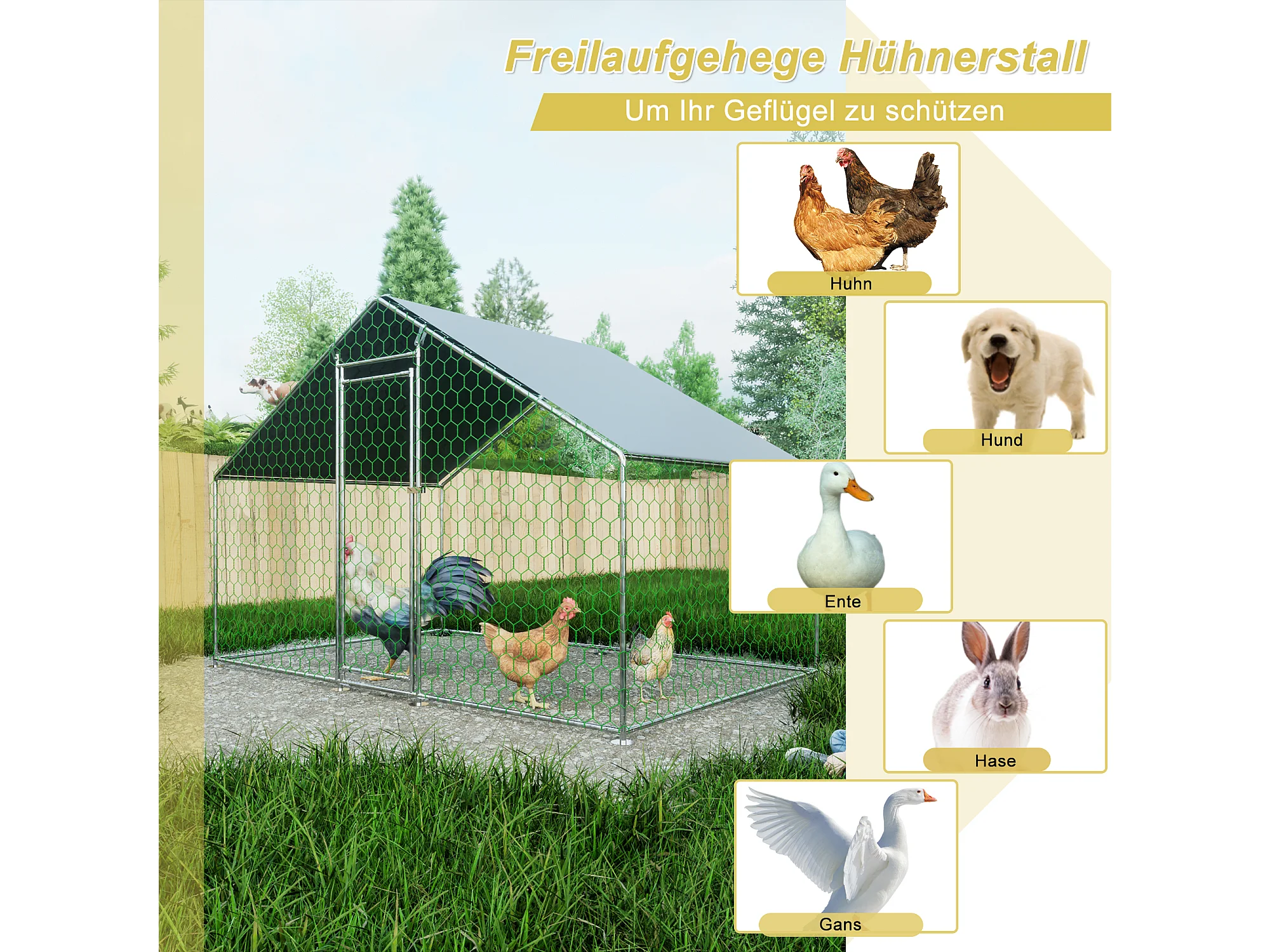 Enclos extérieur volailles/animaux, métal, toiture PE imperméable, serrure, argenté (300x200x200cm)