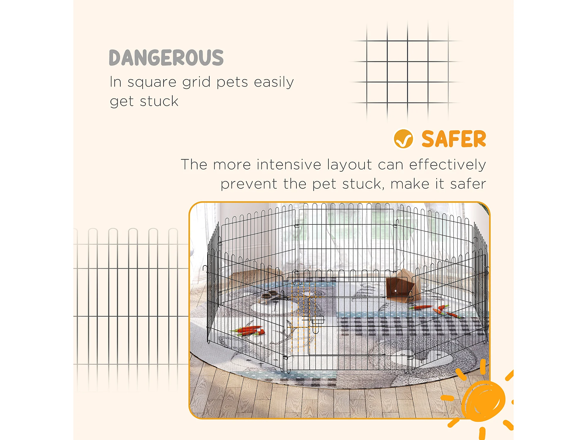 Enclos pour chiots flexible, métal robuste, noir avec porte verrouillable (180x180x61cm)