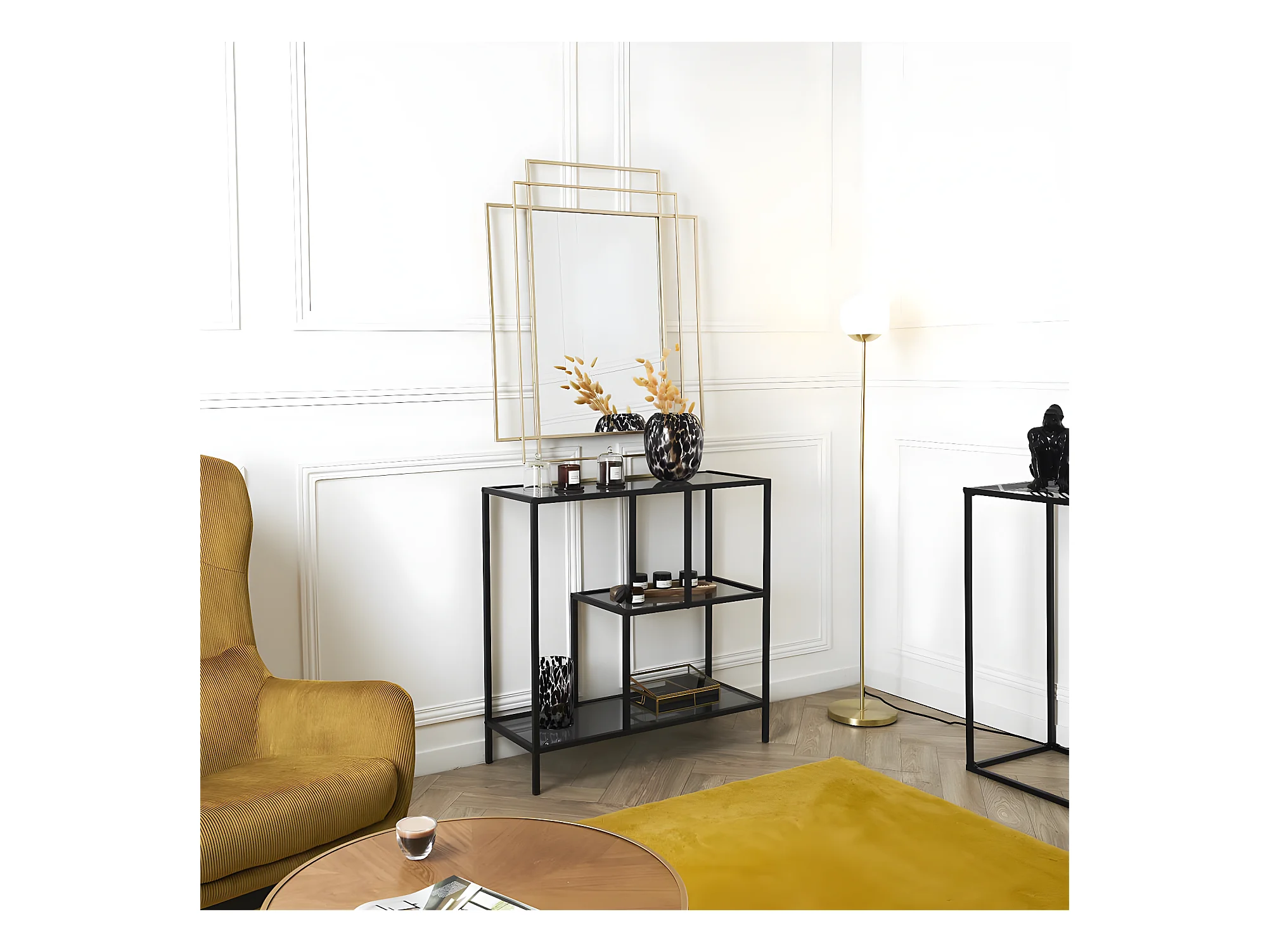 Etagère basse 3 niveaux en métal noir - Industrielle - 120x30x80cm