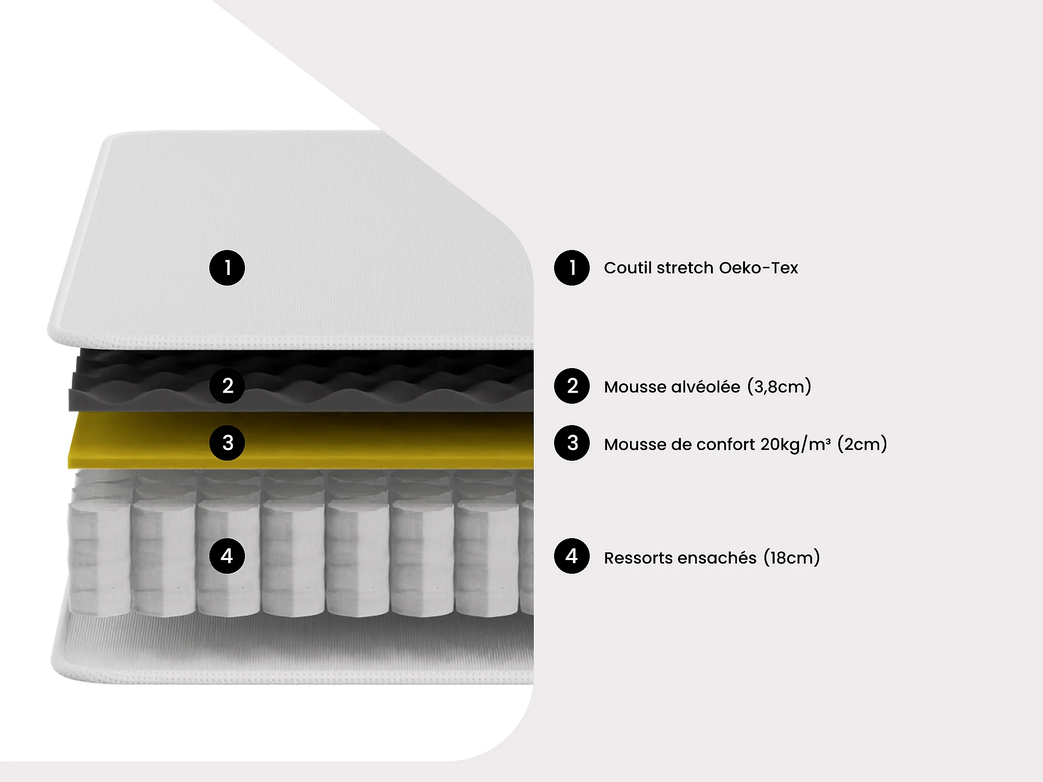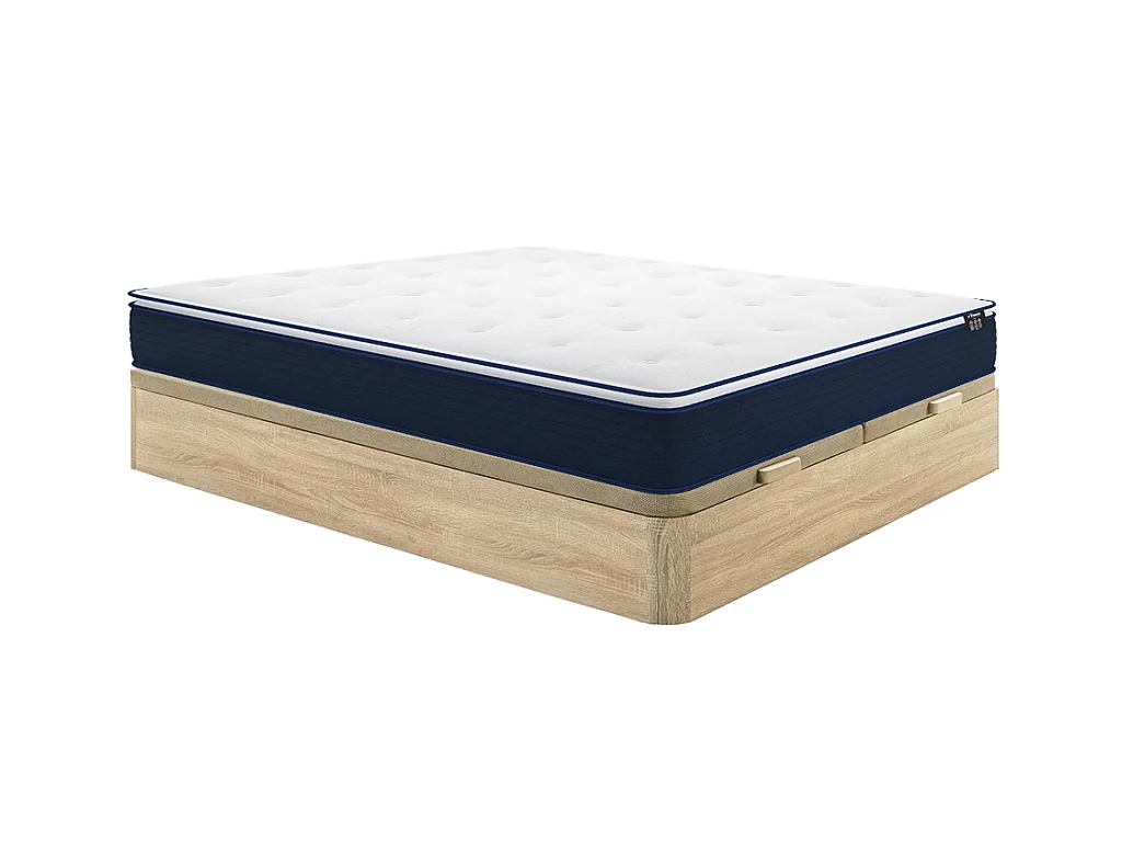 Ensemble 180 x 200 cm sommier coffre naturel clair + matelas ressorts ensachés et surmatelas intégré ép.24cm - ALTIER de YSMÉE