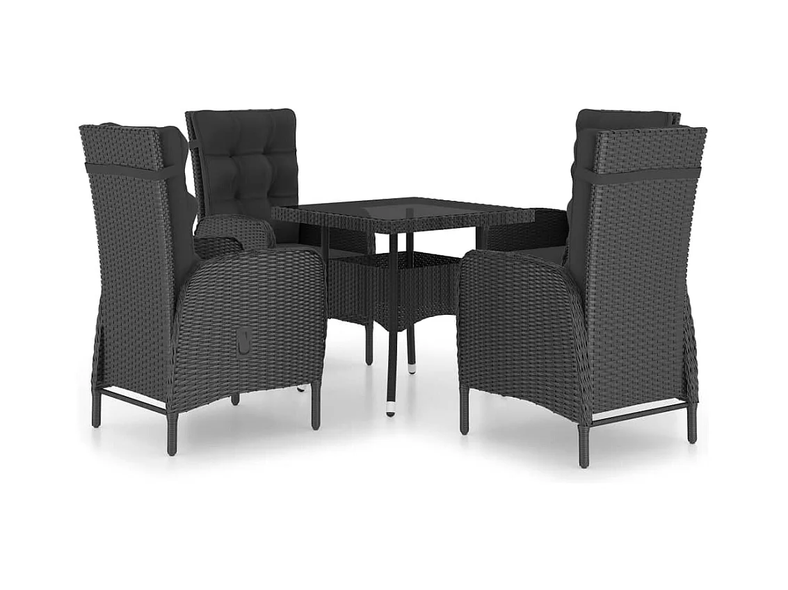 Ensemble à dîner de jardin 5 pcs Résine tressée et verre Noir